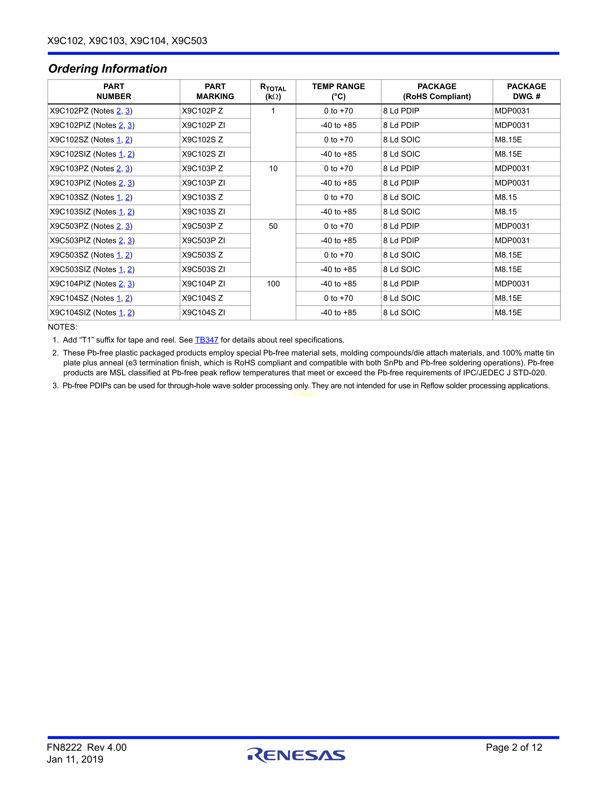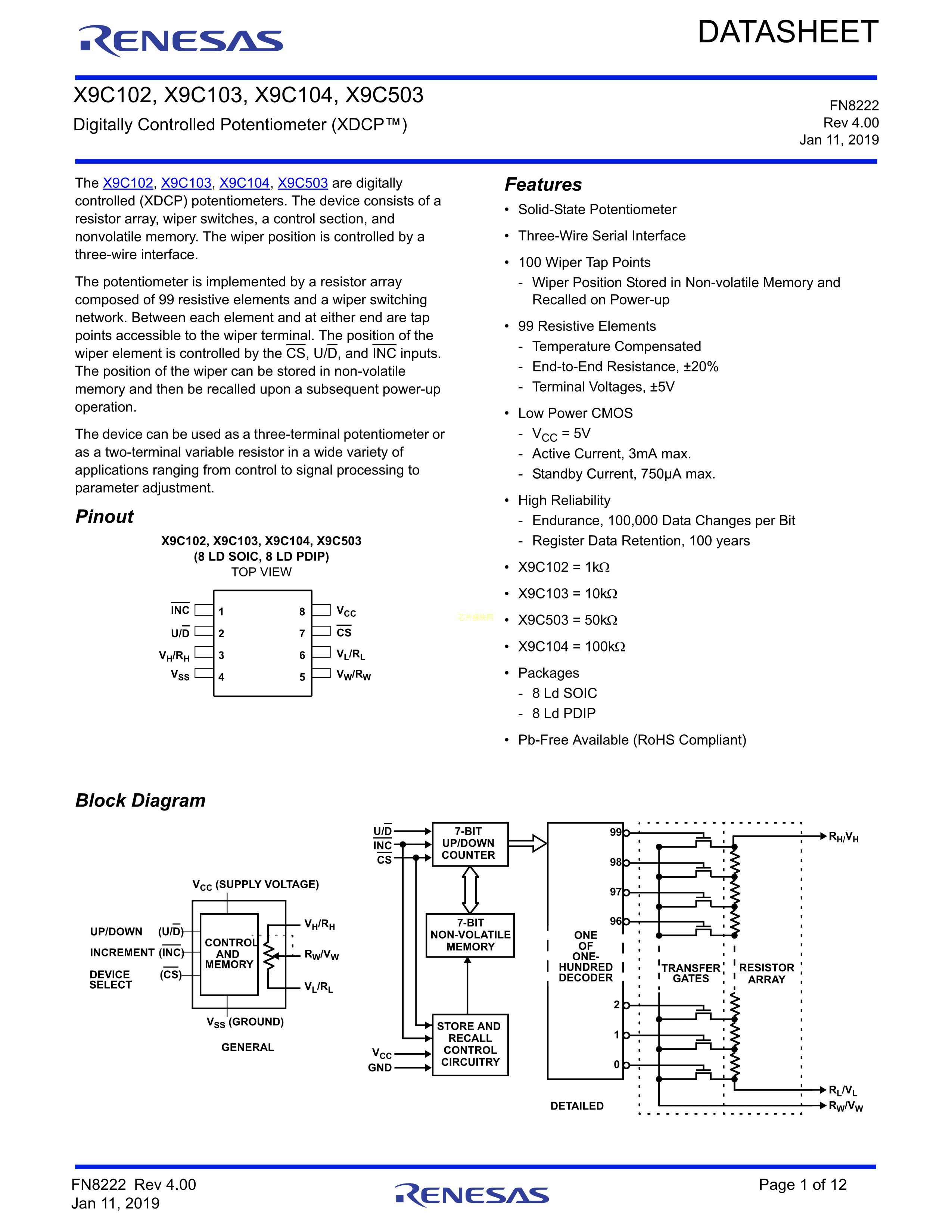 X9C102PIZ数据手册PDIP-8封装RENESAS(瑞萨)-IDTPDF规格书,中英文下载