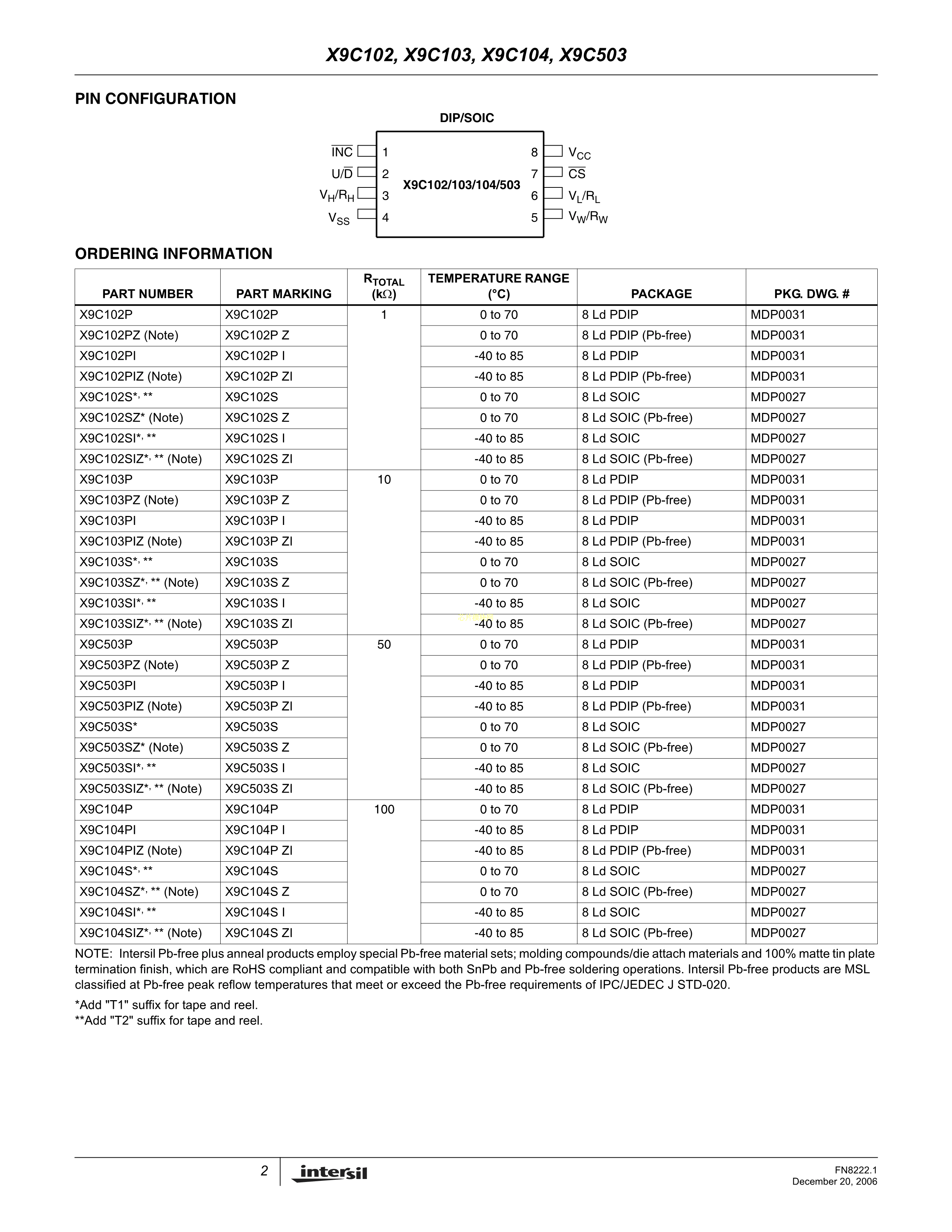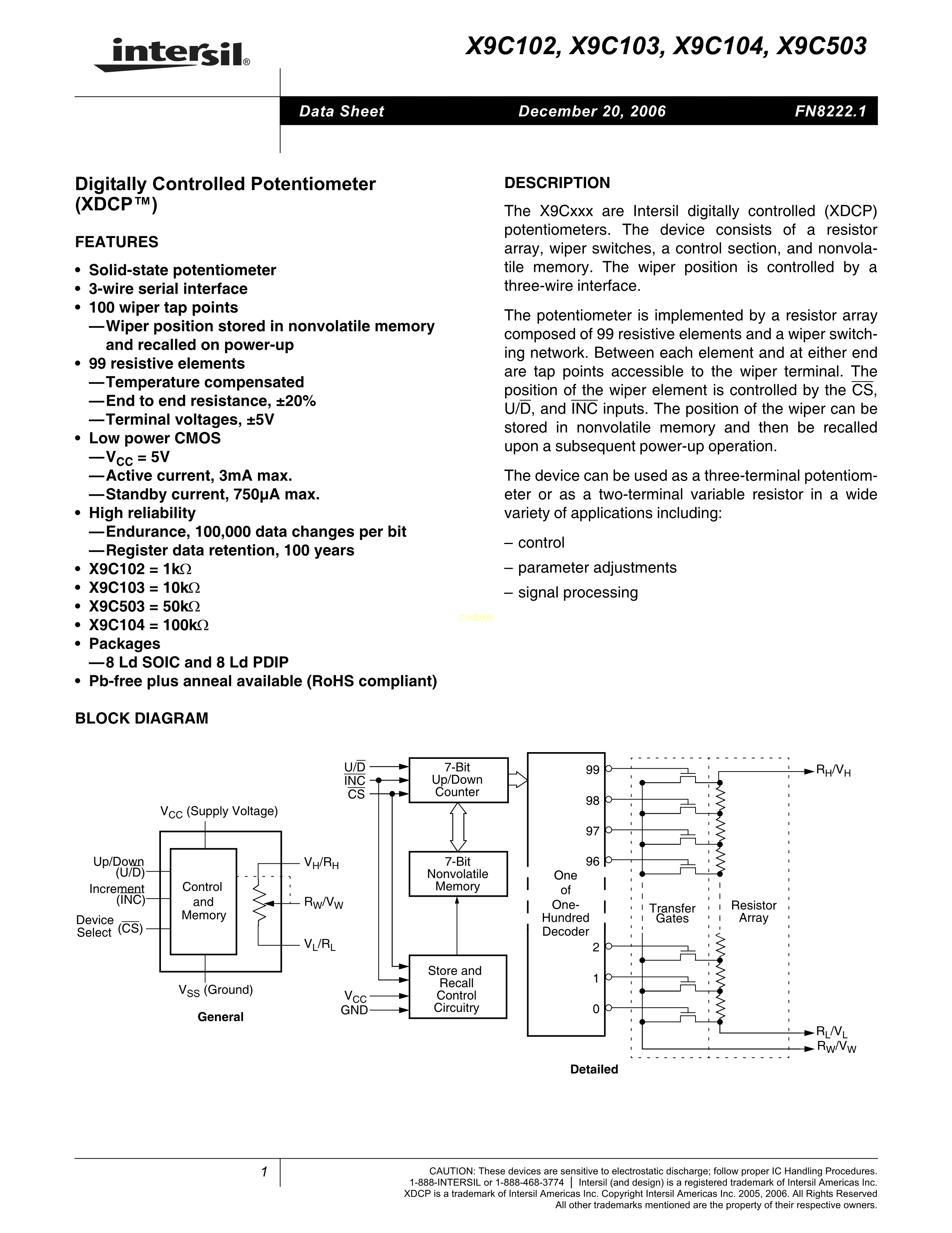 X9C104SIZT1数据手册SOIC-8_150mil封装RENESAS(瑞萨)-IDTPDF规格