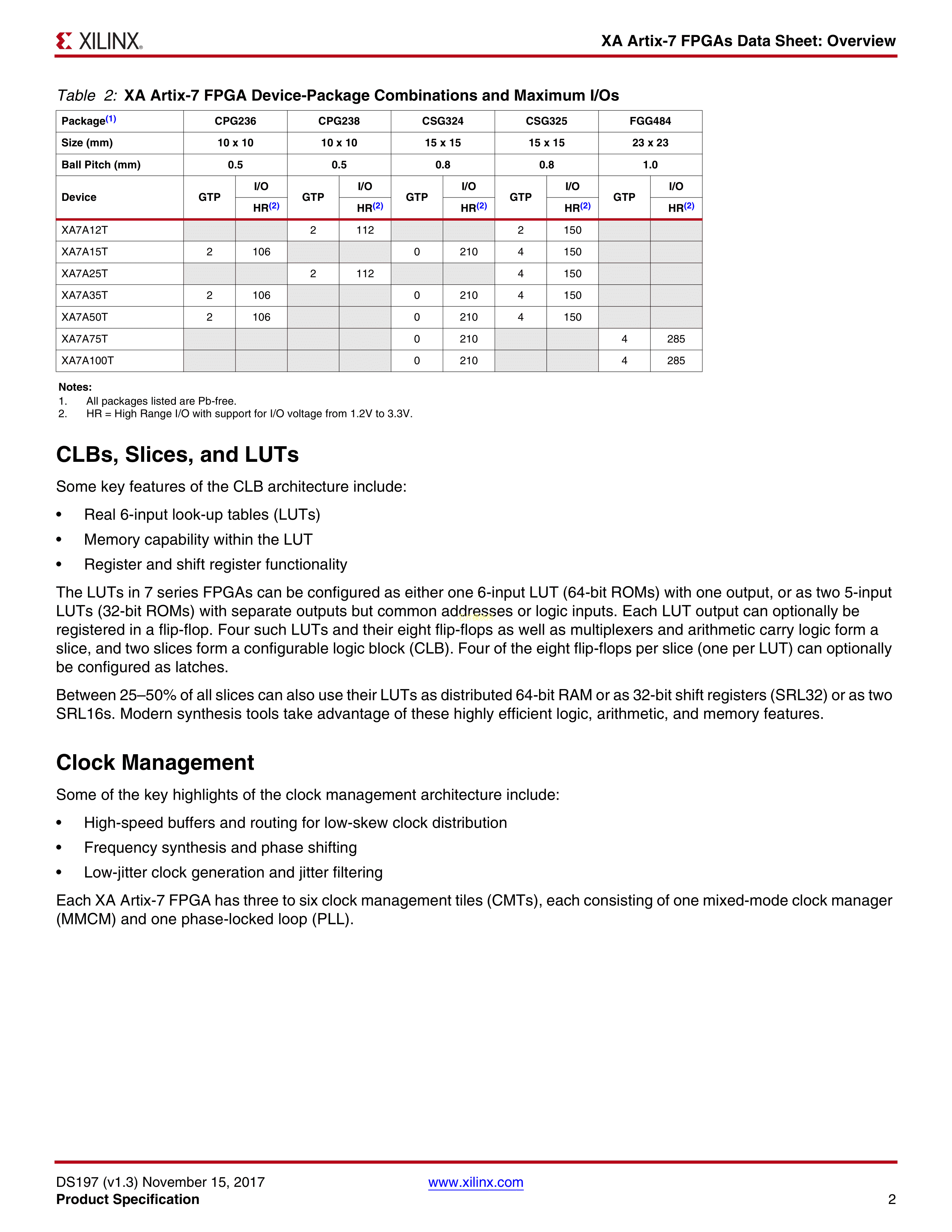 XA7A100T-1CSG324I数据手册CSPBGA-324(15x15)封装XILINX(赛灵思