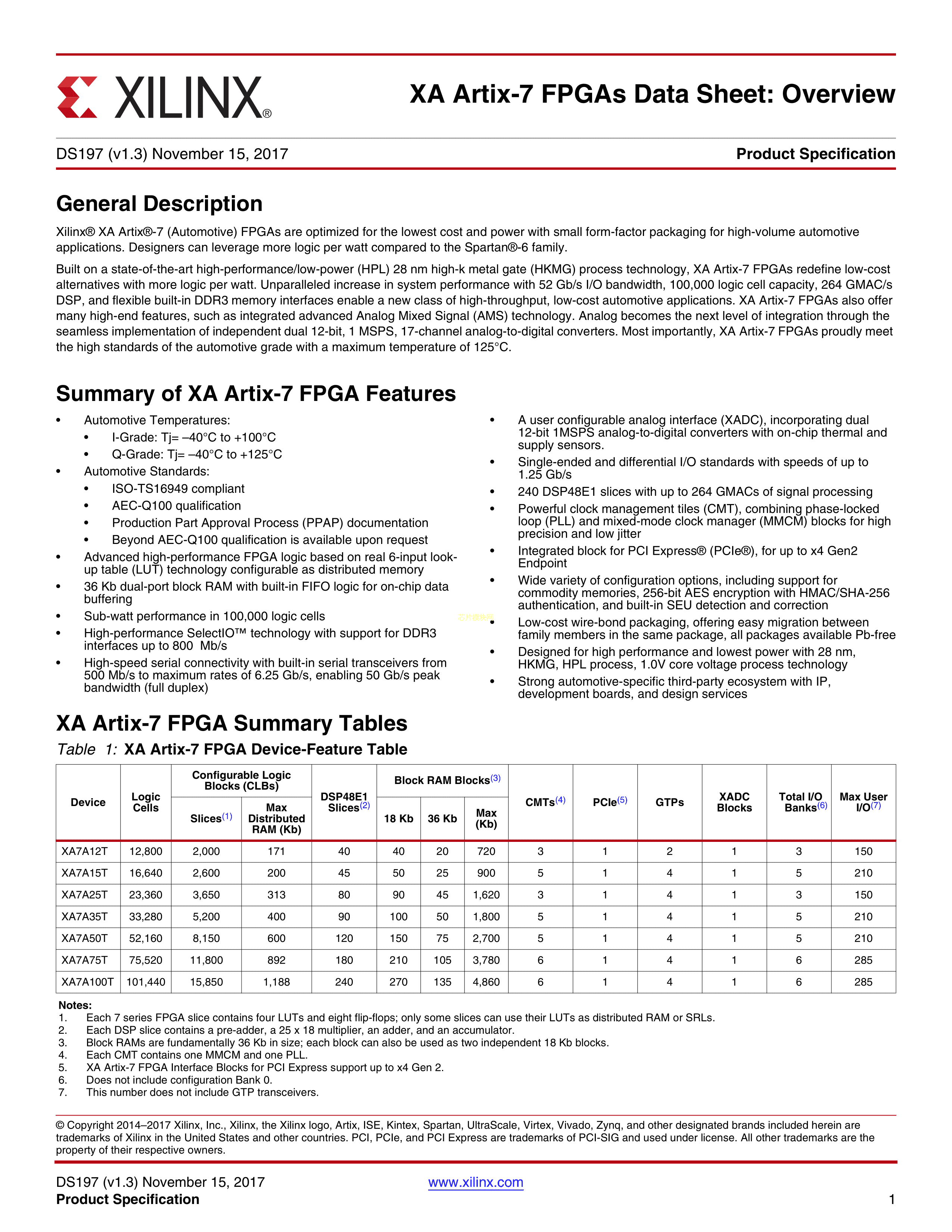 XA7A75T-1FGG484Q数据手册FBGA-484(23x23)封装XILINX(赛灵思)PD