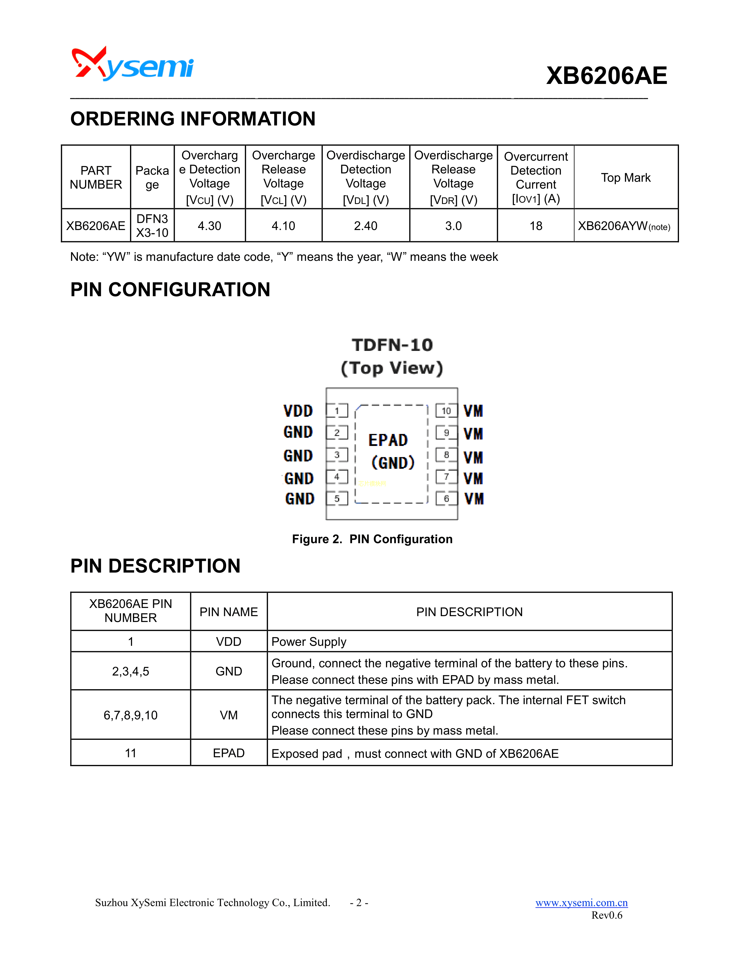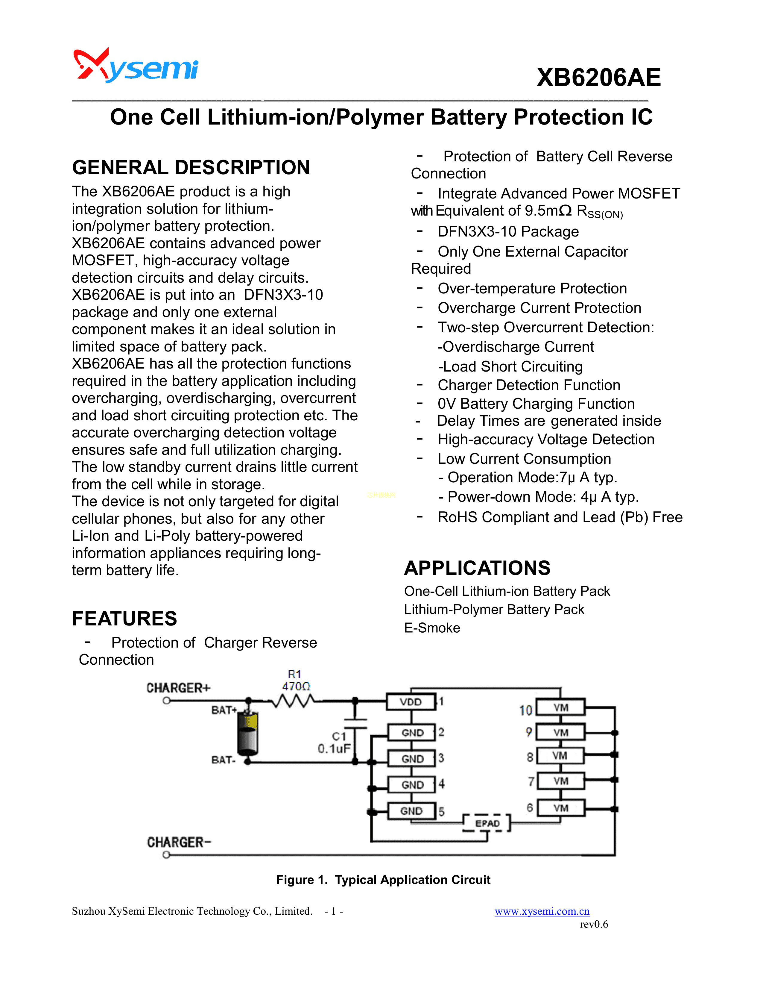 XB6206AE数据手册DFN3x3-10封装xysemi(赛芯微)PDF规格书,中英文下载