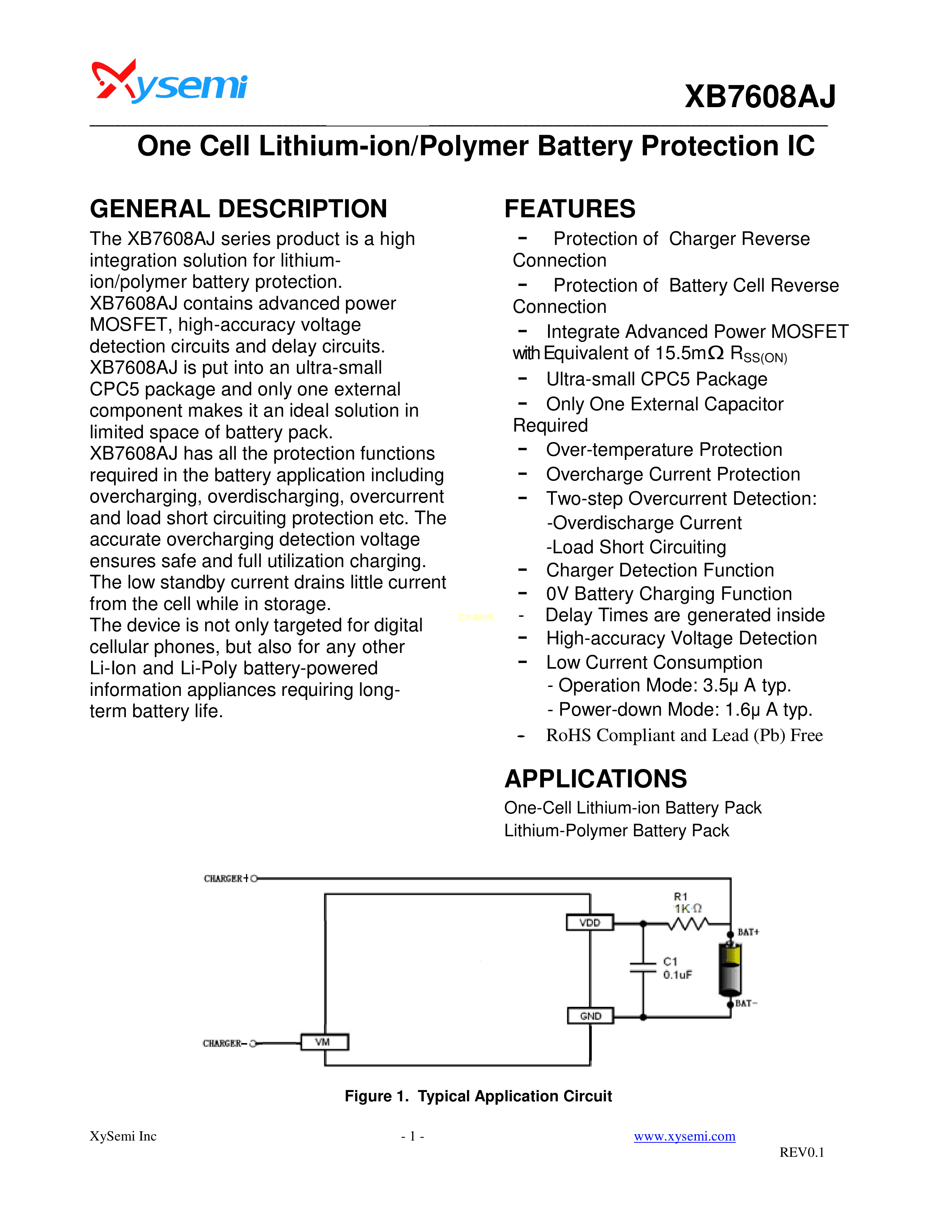 XB7608AJ数据手册CPC5封装xysemi(赛芯微)PDF规格书,中英文下载