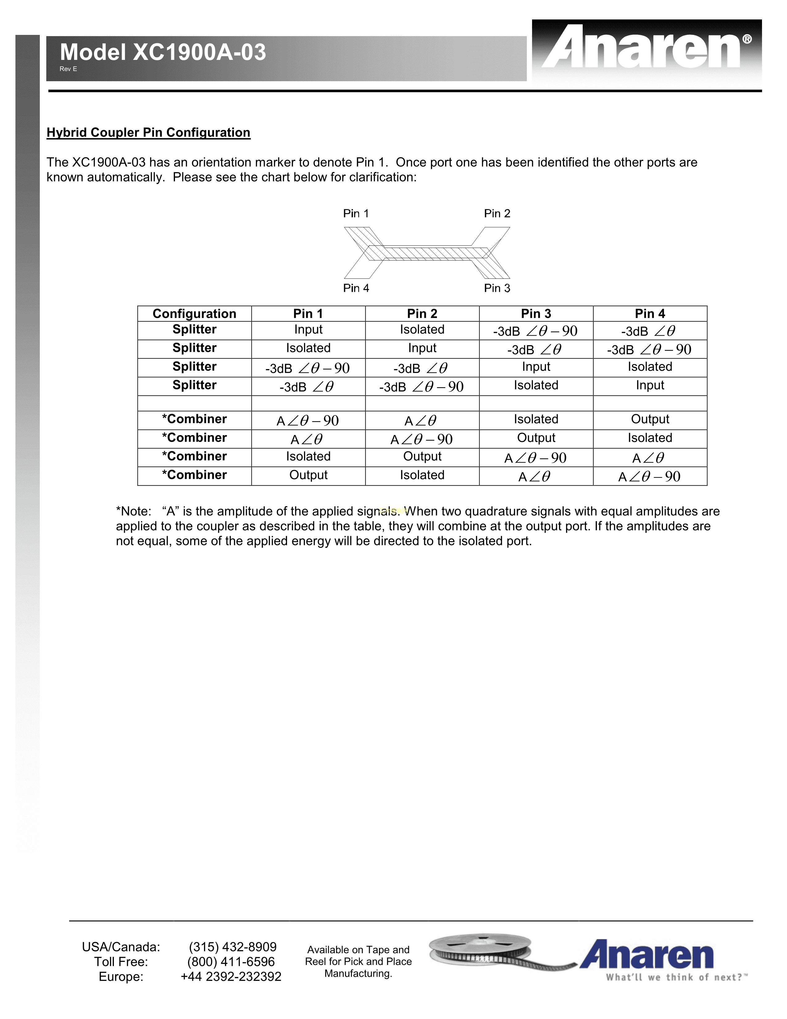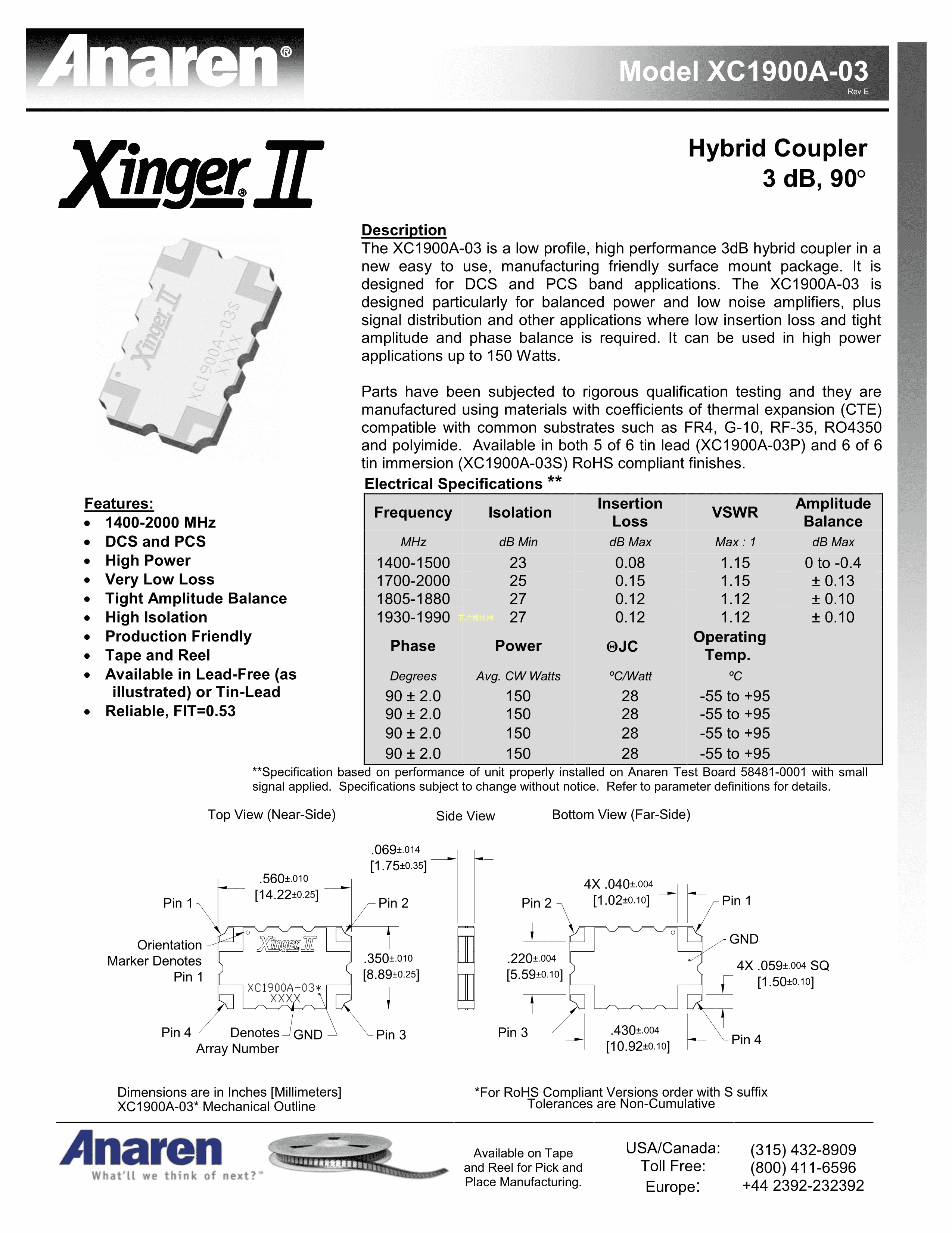 XC1900A-03S数据手册SMD封装Anaren(安伦)PDF规格书,中英文下载
