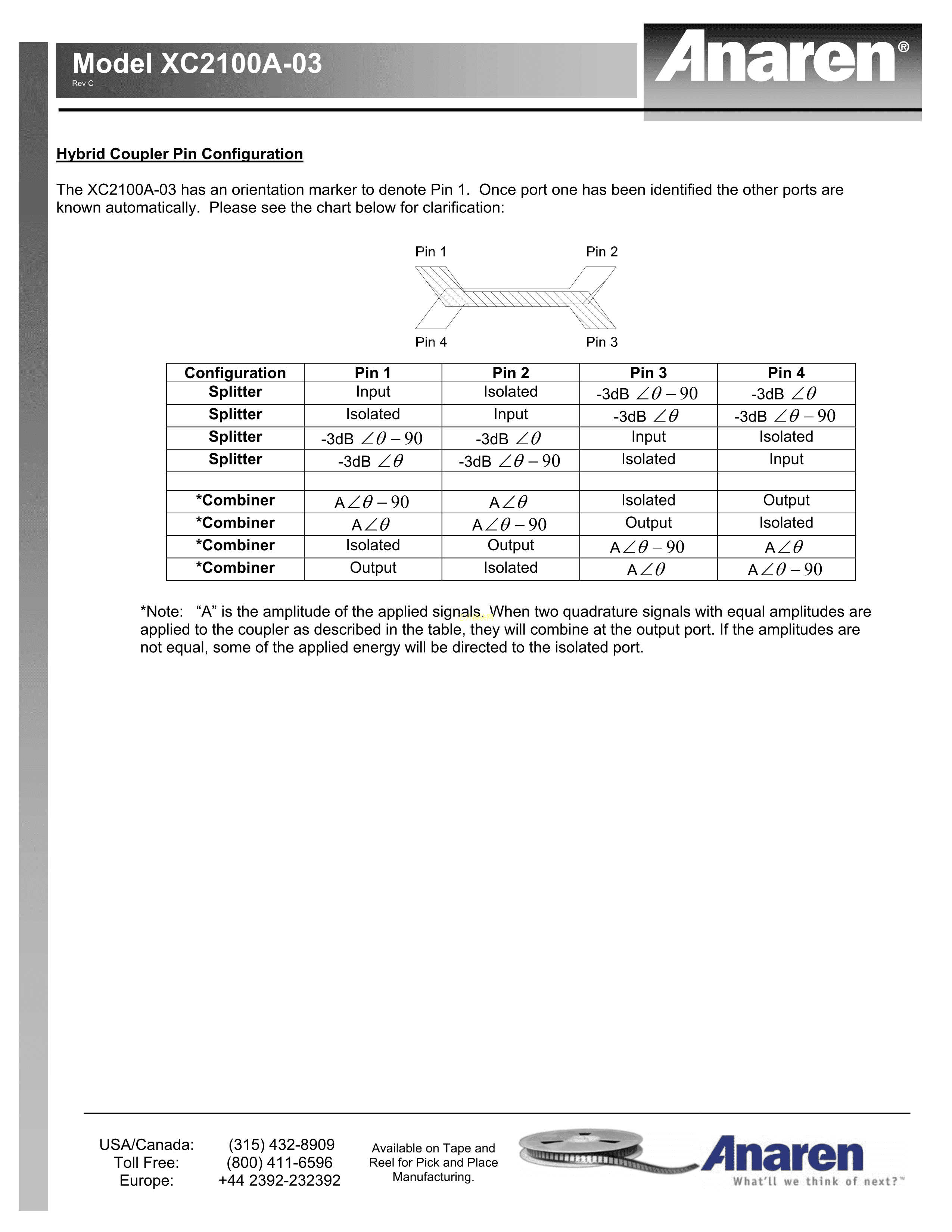 XC2100A-03S数据手册SMD封装Anaren(安伦)PDF规格书,中英文下载