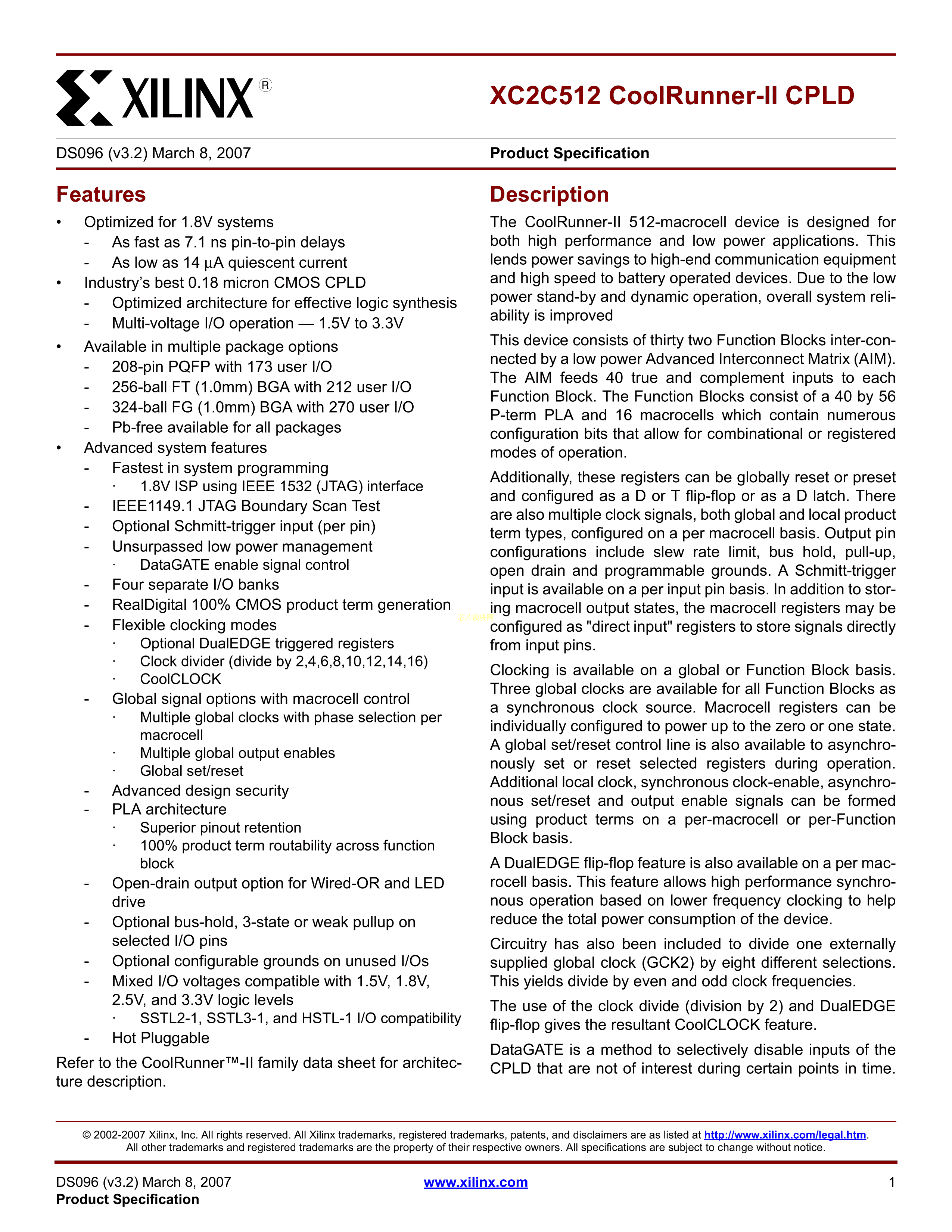 XC2C512-7FTG256I数据手册FTBGA-256(17x17)封装XILINX(赛灵思)P