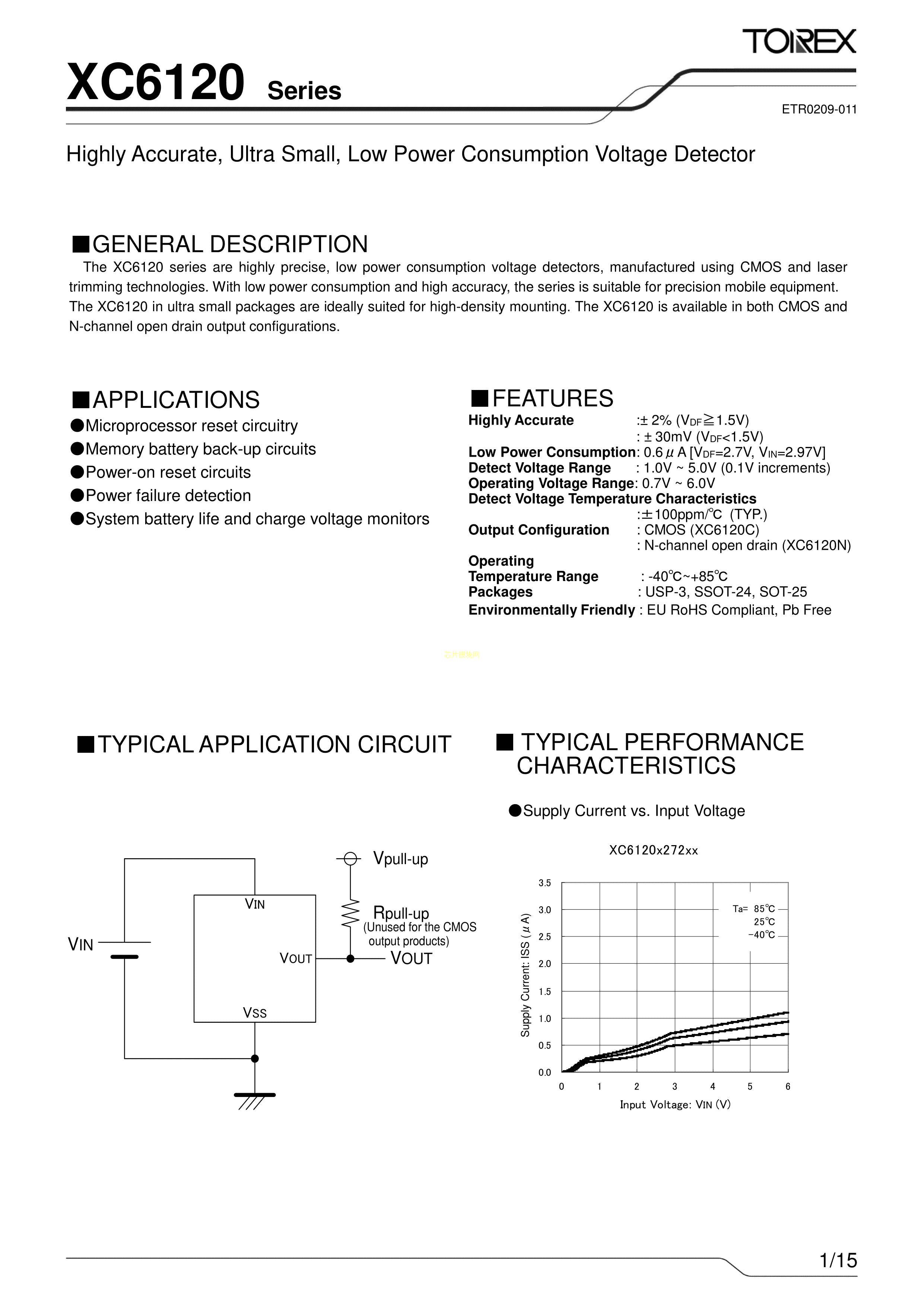 XC6120C212HR-G数据手册USP-3(1.2x1.2)封装TOREX(特瑞仕)PDF规格书
