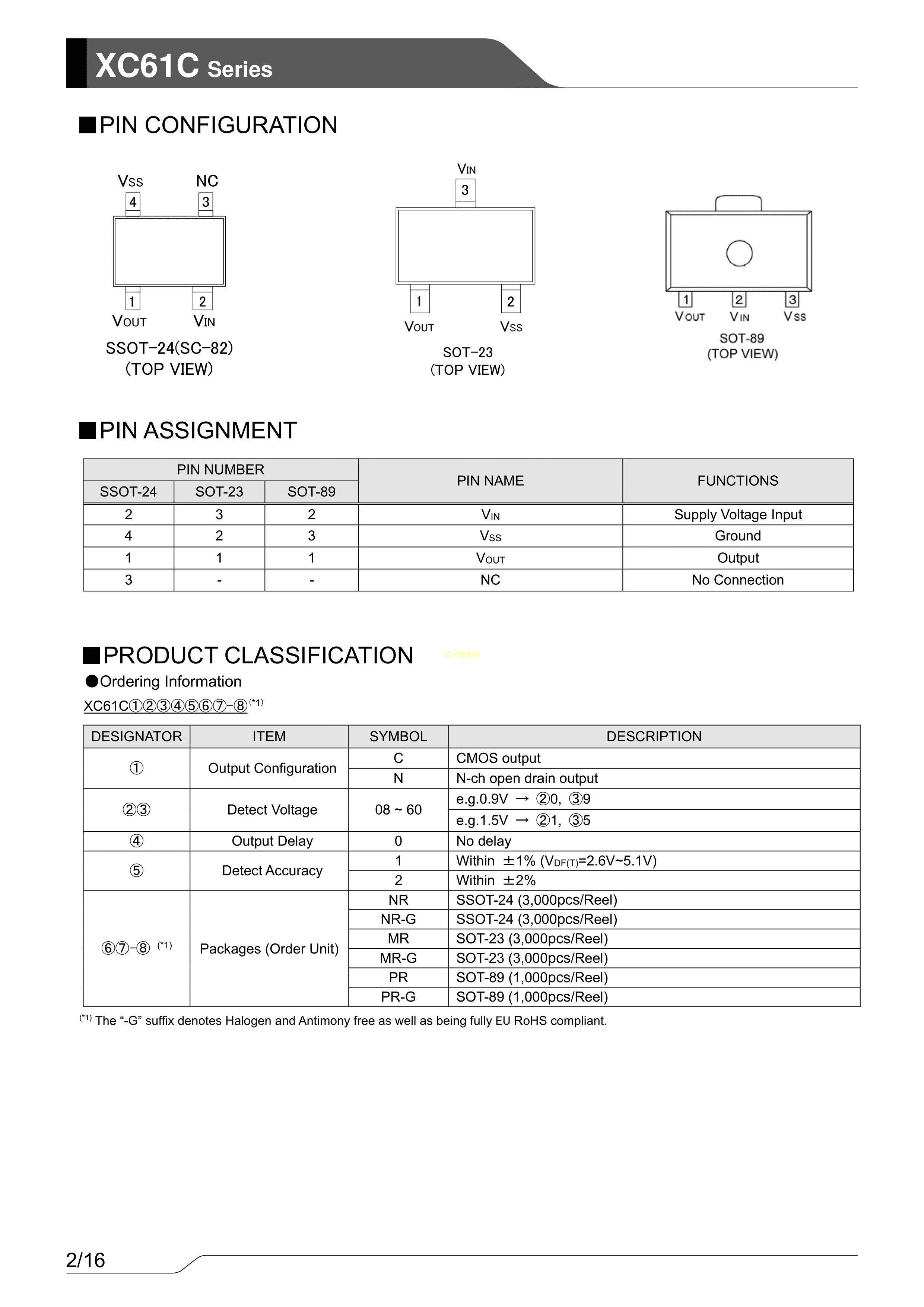 XC61CN2102MR数据手册SOT-23-3封装TOREX(特瑞仕)PDF规格书,中英文下载