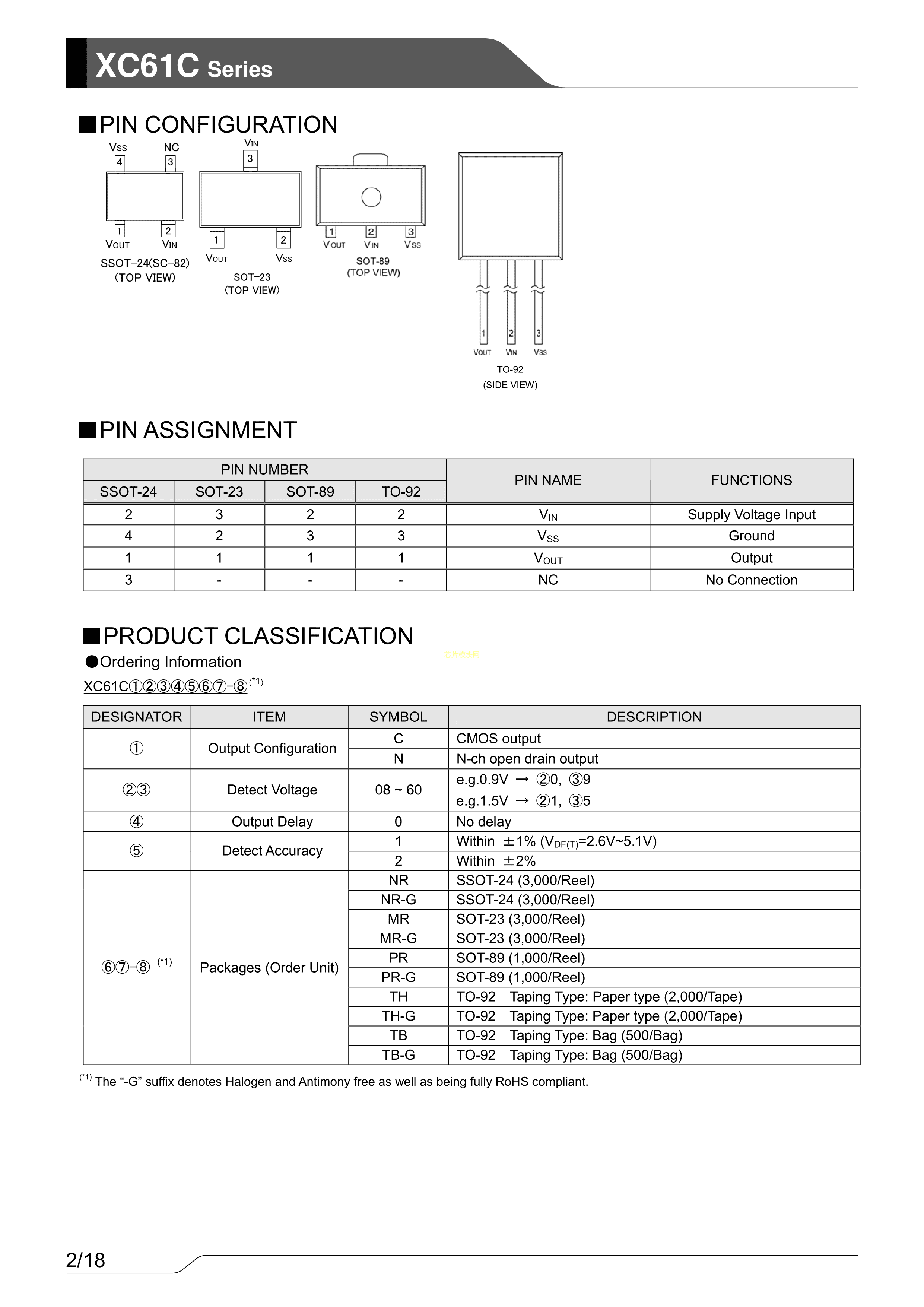 XC61CN3302MR-G数据手册SOT-23(SOT-23-3)封装TOREX(特瑞仕)PDF规