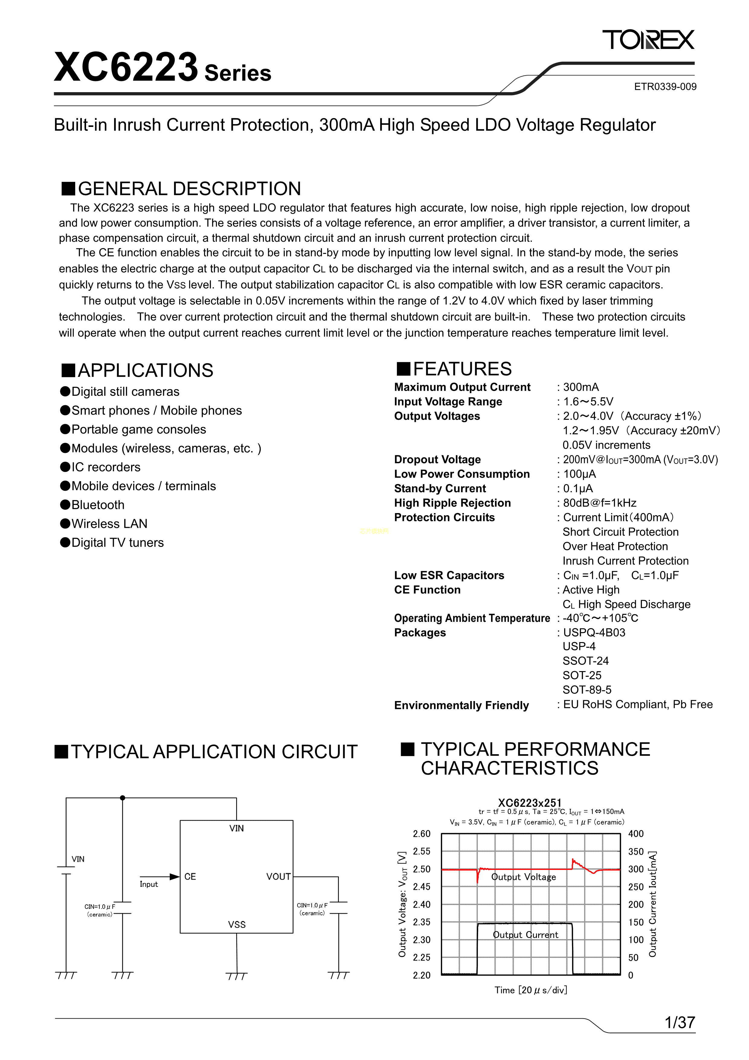 XC6223A331PR-G数据手册SOT-89-5封装TOREX(特瑞仕)PDF规格书,中英文下载