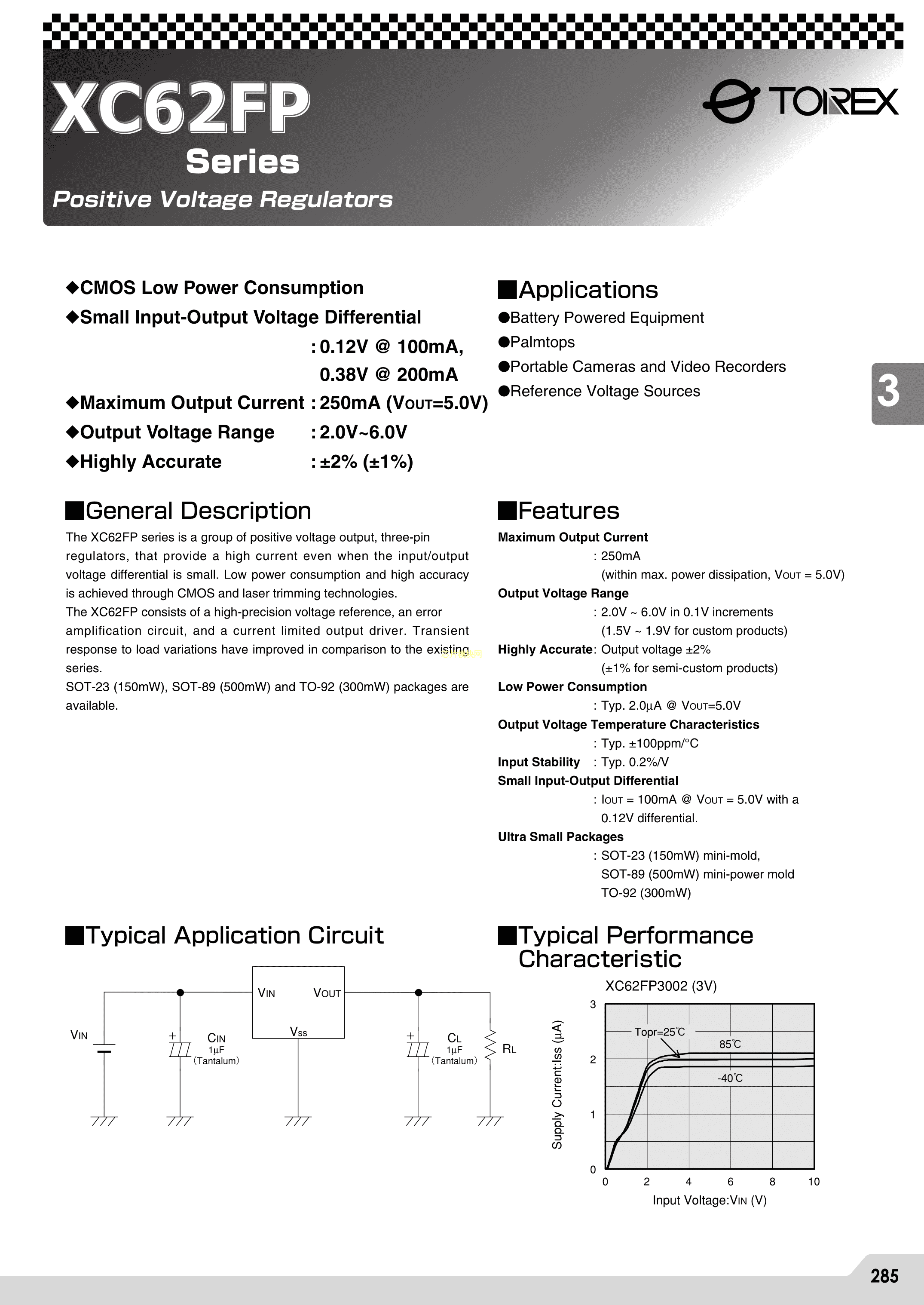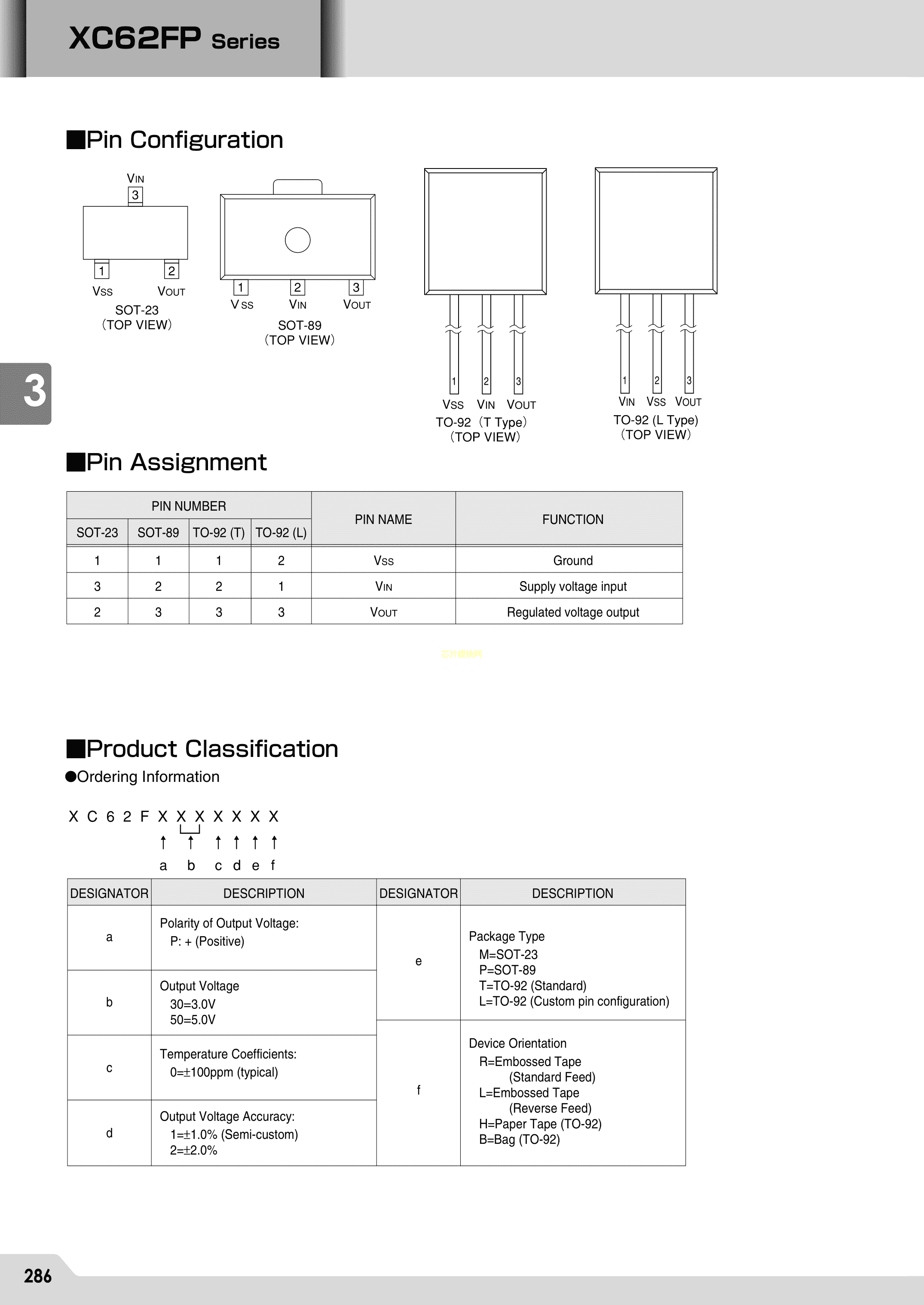 XC62FP3002PR数据手册SOT-89(SOT-89-3)封装TOREX(特瑞仕)PDF规格书