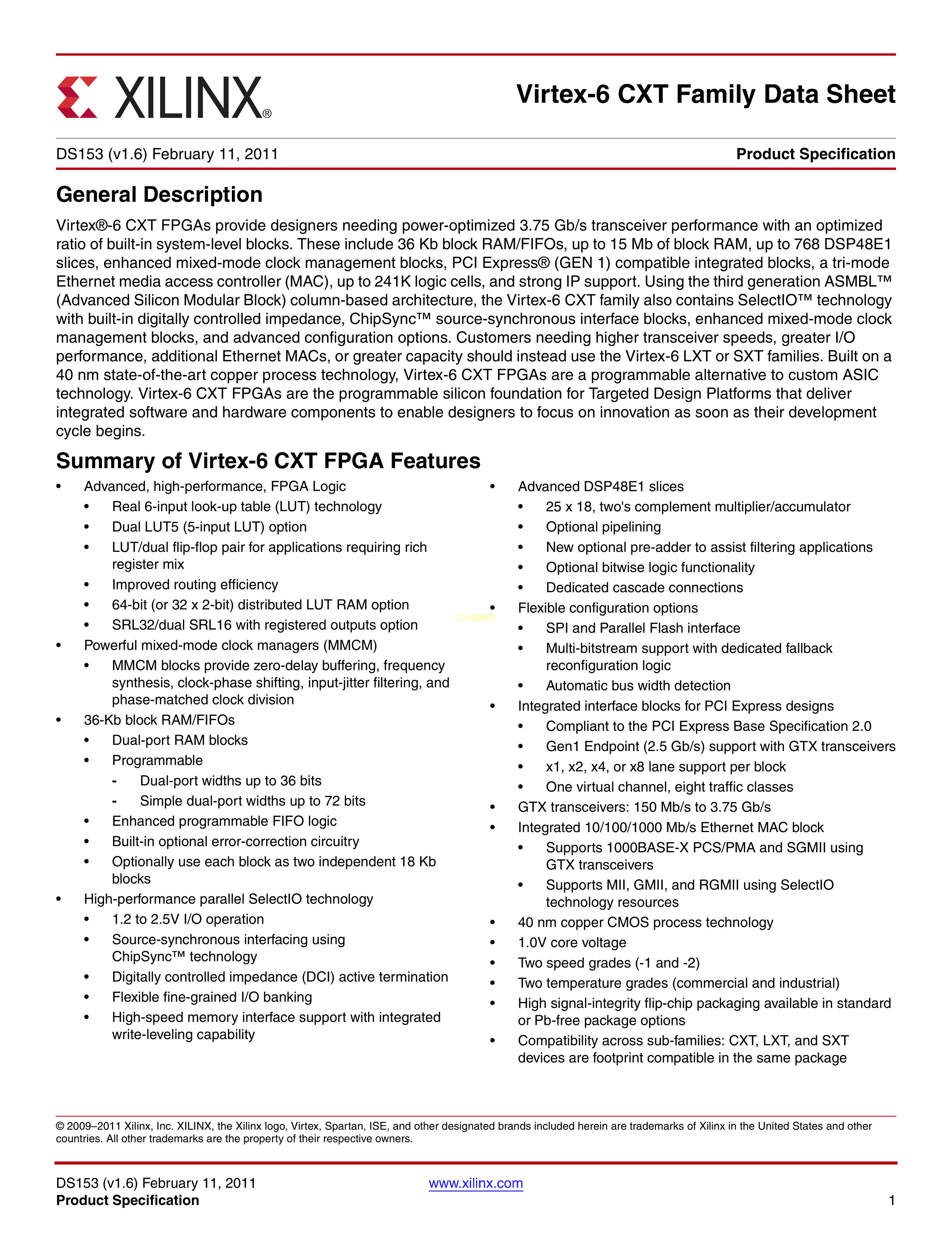 XC6VCX130T-1FFG484I数据手册FBGA-484(23x23)封装XILINX(赛灵思