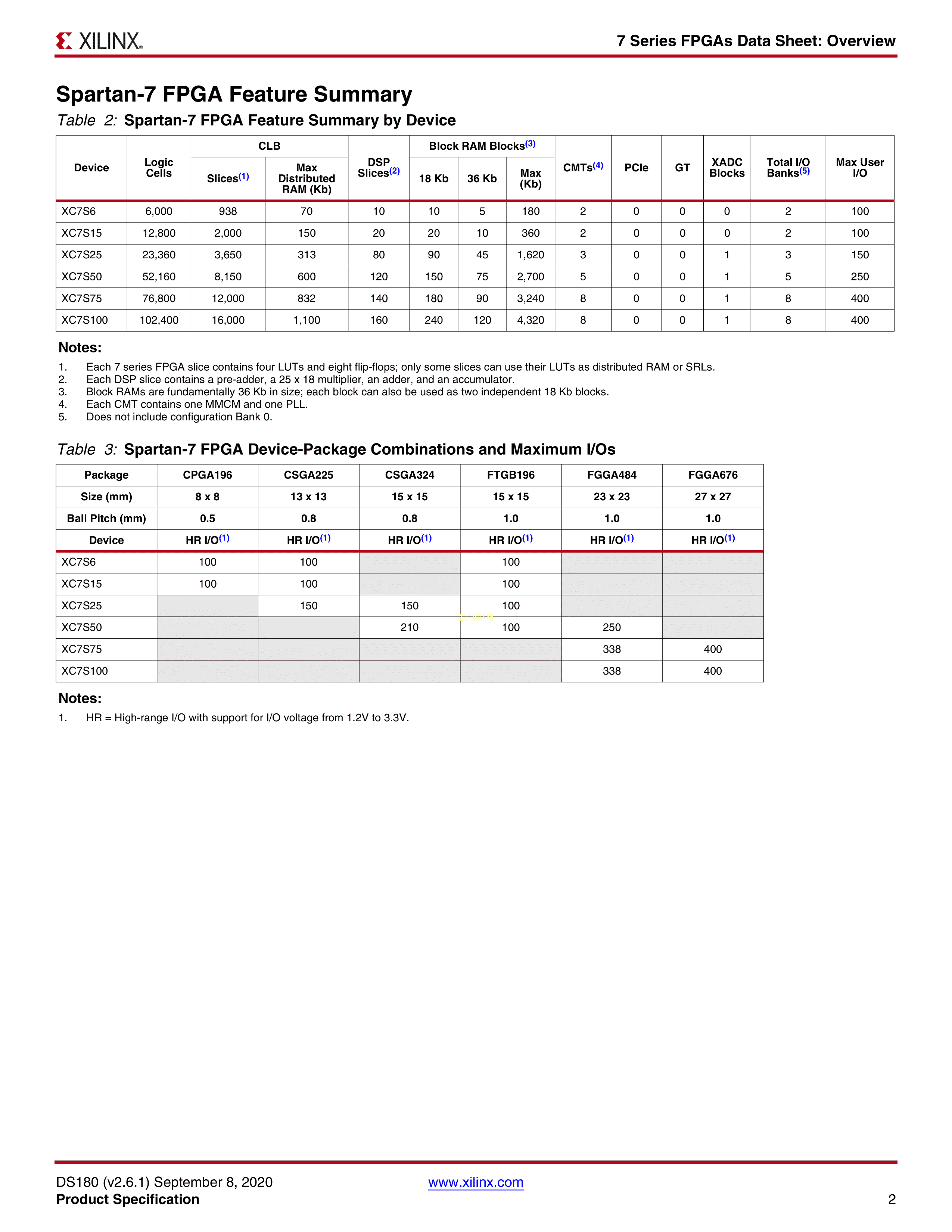 XC7S25-2CSGA324C数据手册CSGA-324(15x15)封装XILINX(赛灵思)PD