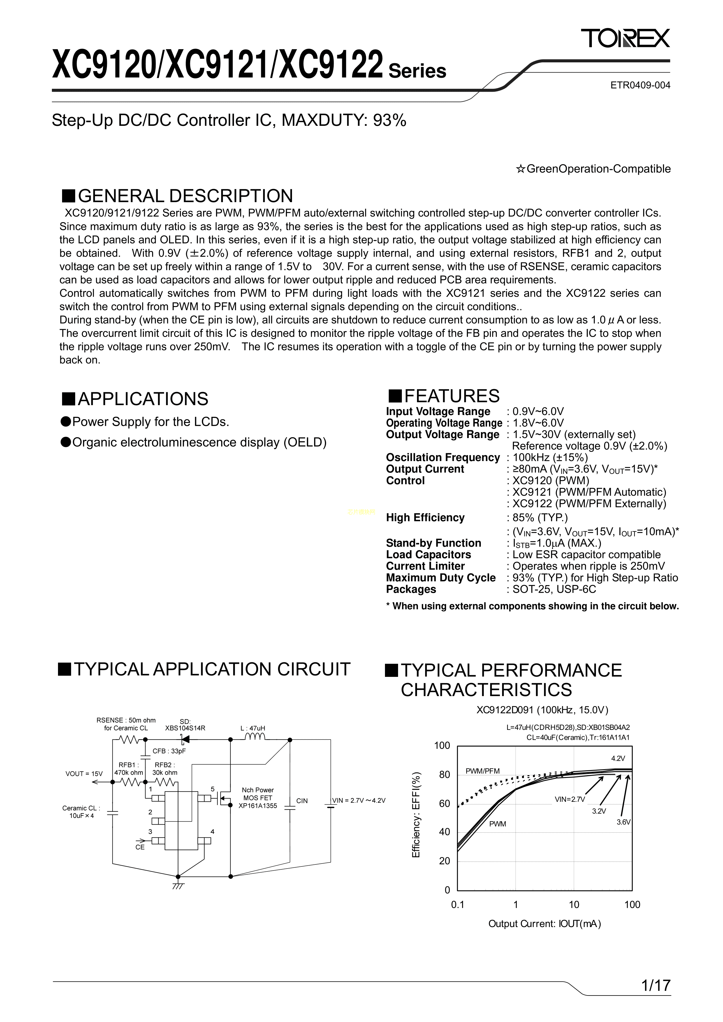 XC9121B091ER-G数据手册USPC-6(1.8x2)封装TOREX(特瑞仕)PDF规格书,
