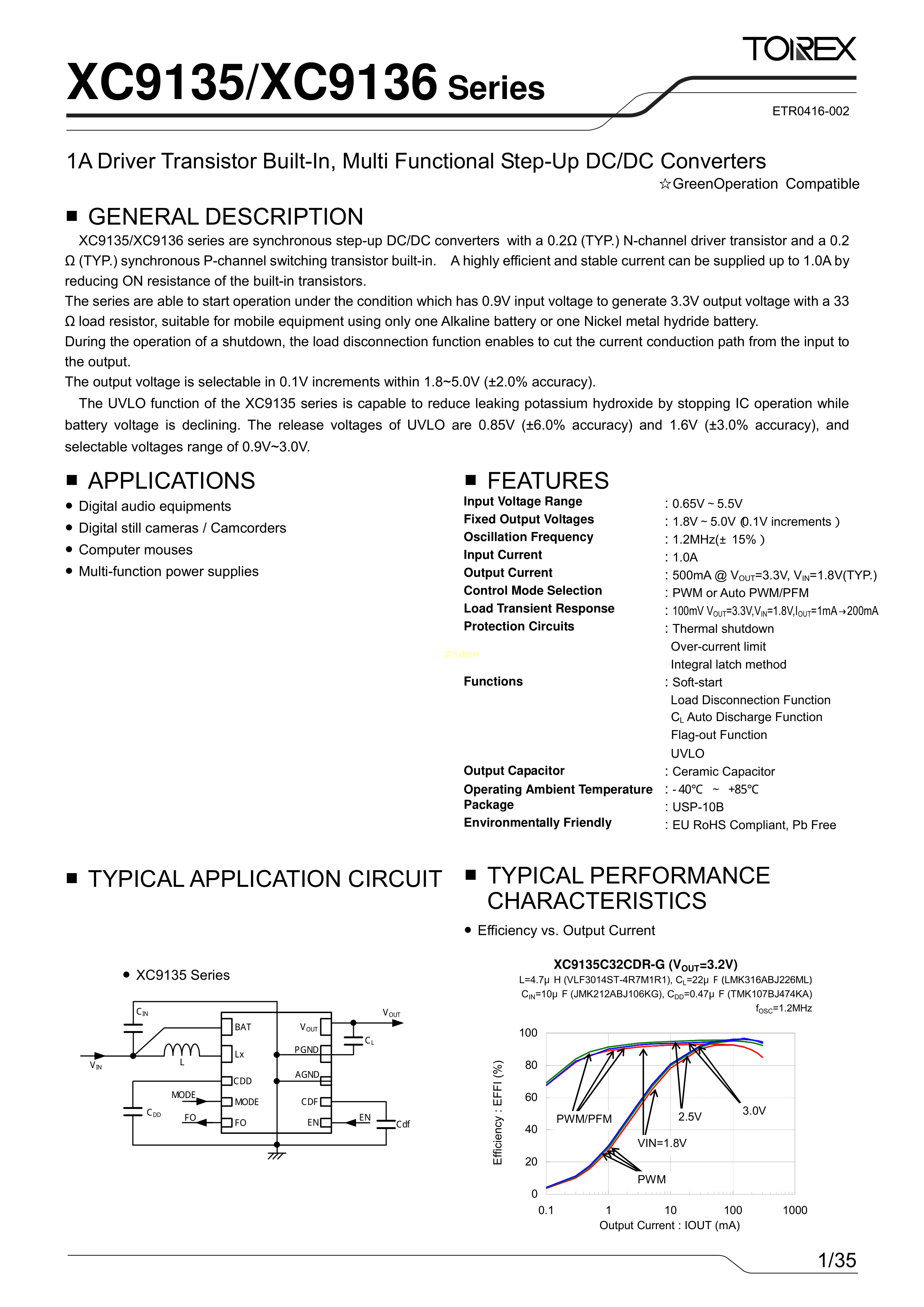 XC9135K30CDR-G数据手册USPB-10(2.9x2.6)封装TOREX(特瑞仕)PDF规