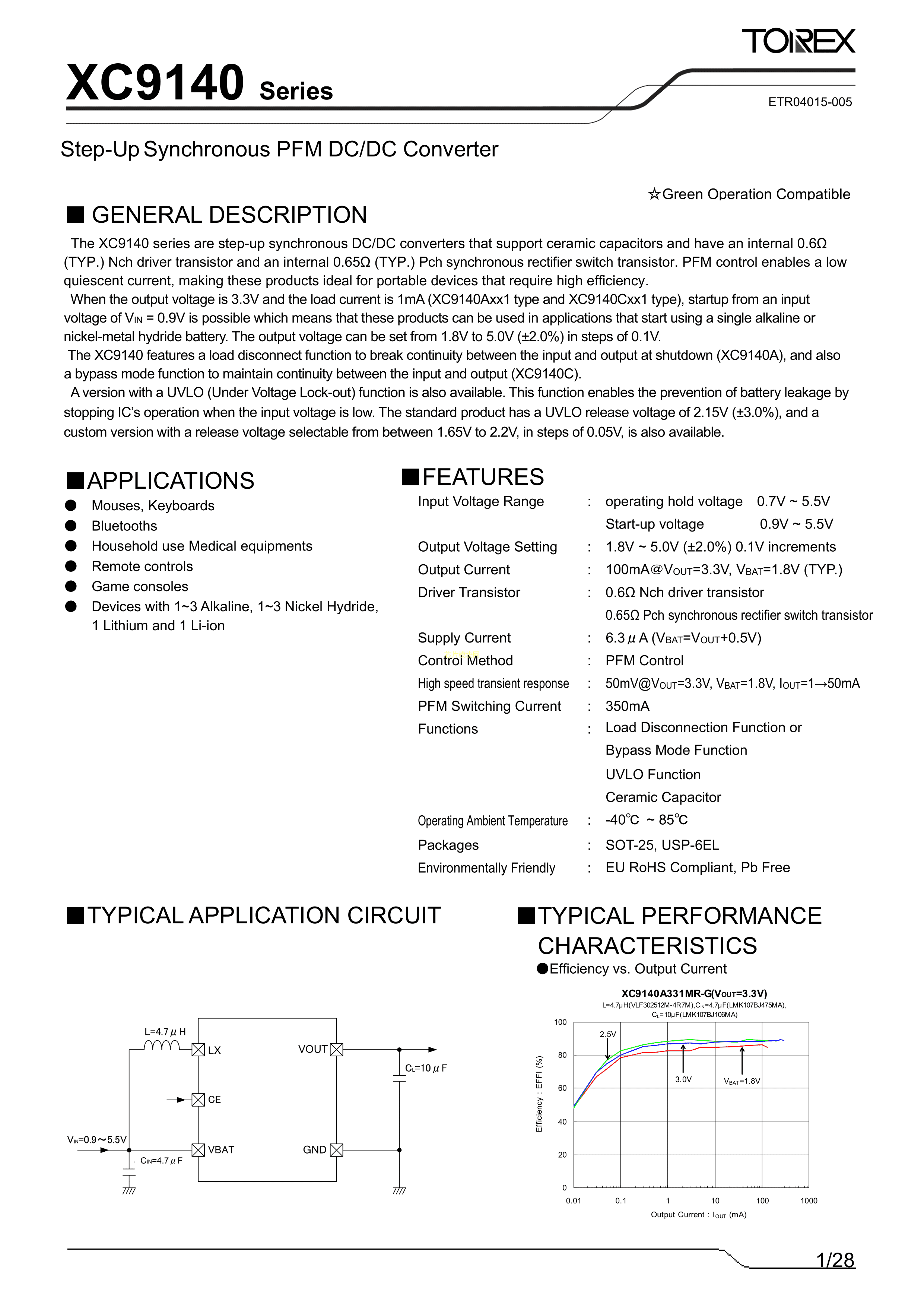 XC9140C3224R-G数据手册USPEL-6(1.8x2)封装TOREX(特瑞仕)PDF规格书