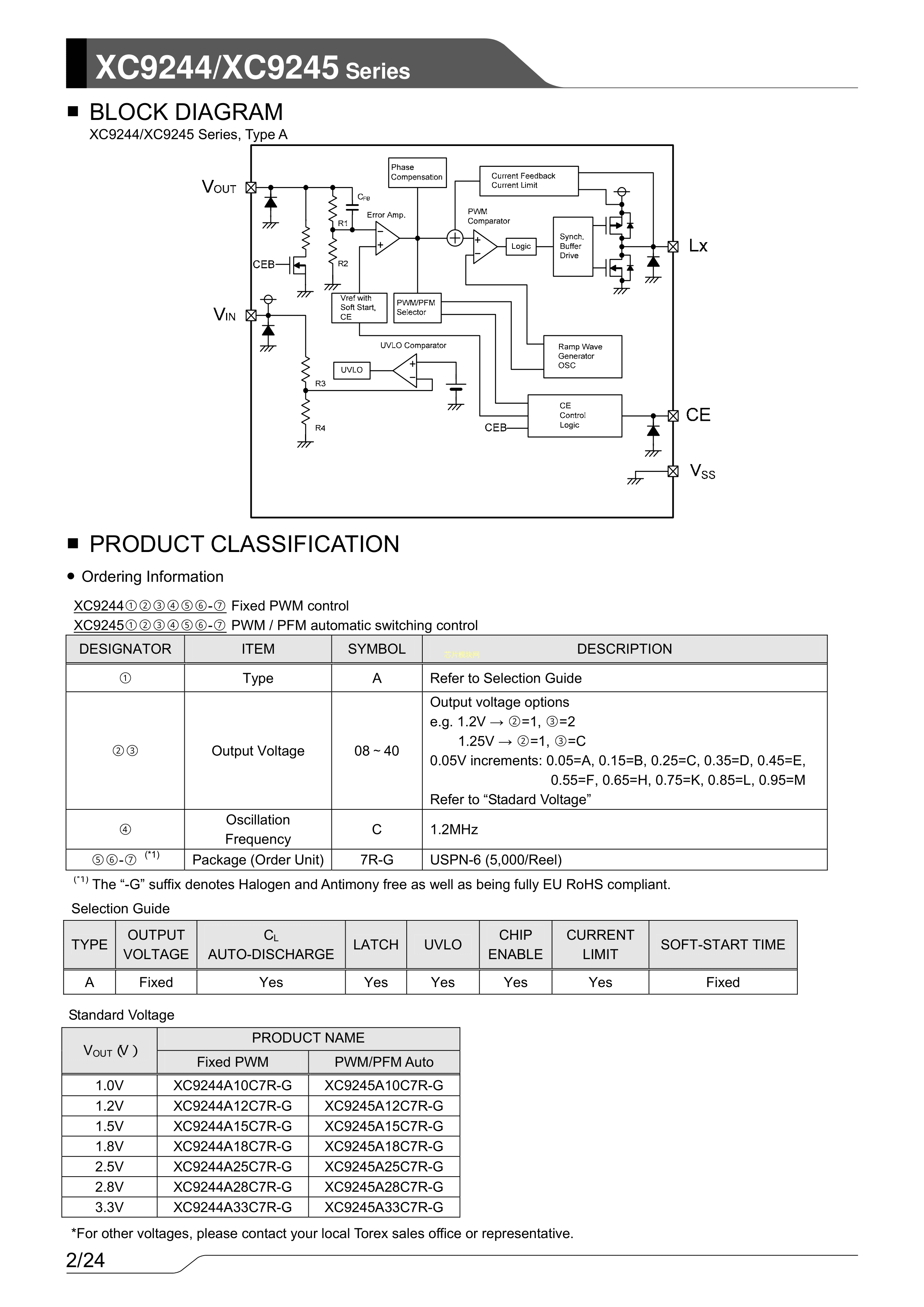 XC9244A26C7R-G数据手册USPN-6(1.3x1.3)封装TOREX(特瑞仕)PDF规格