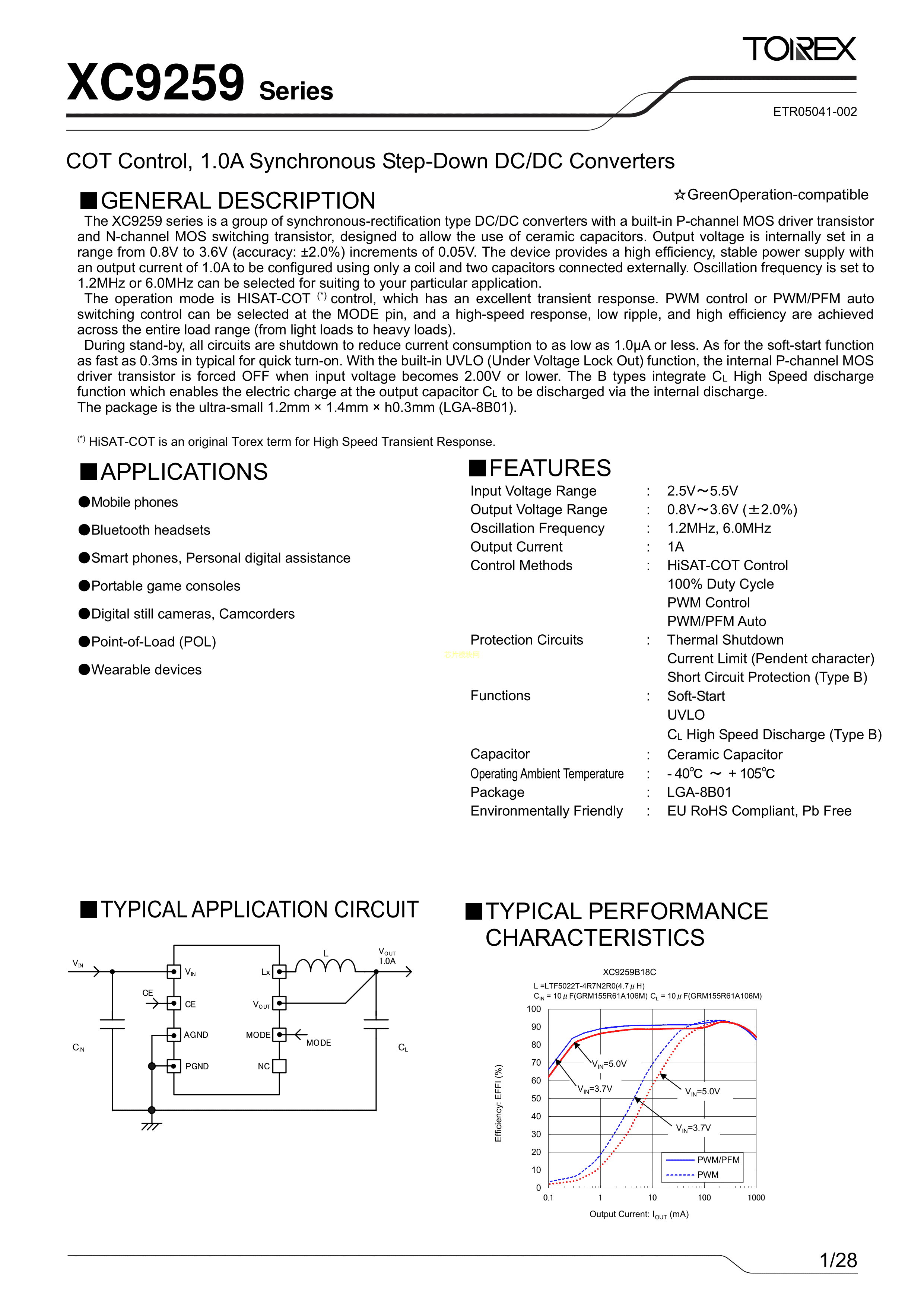 XC9259A2DC1R-G数据手册LGA-8B01封装TOREX(特瑞仕)PDF规格书,中英文下载