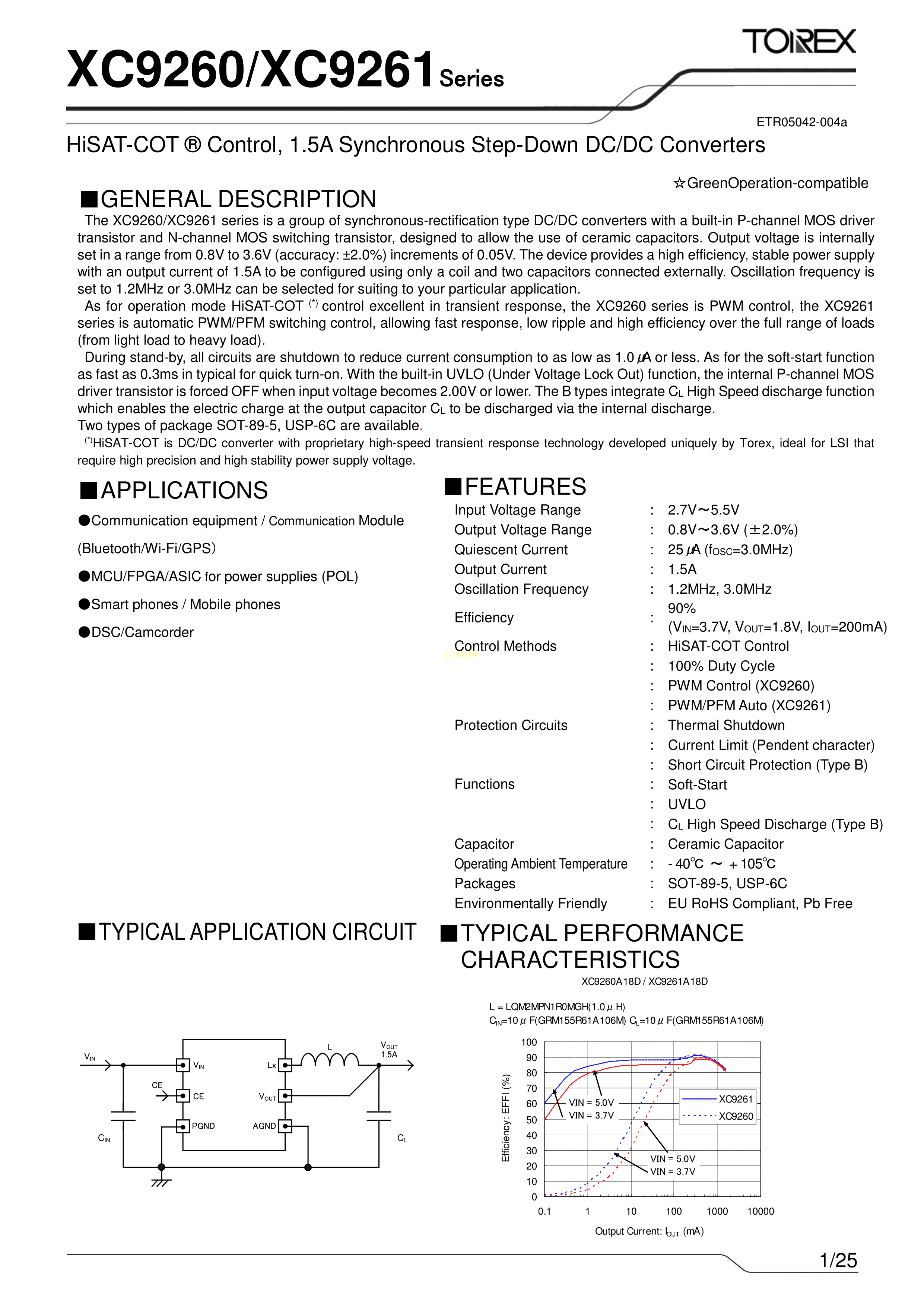 XC9260A1DDPR-G数据手册SOT-89-5封装TOREX(特瑞仕)PDF规格书,中英文下载