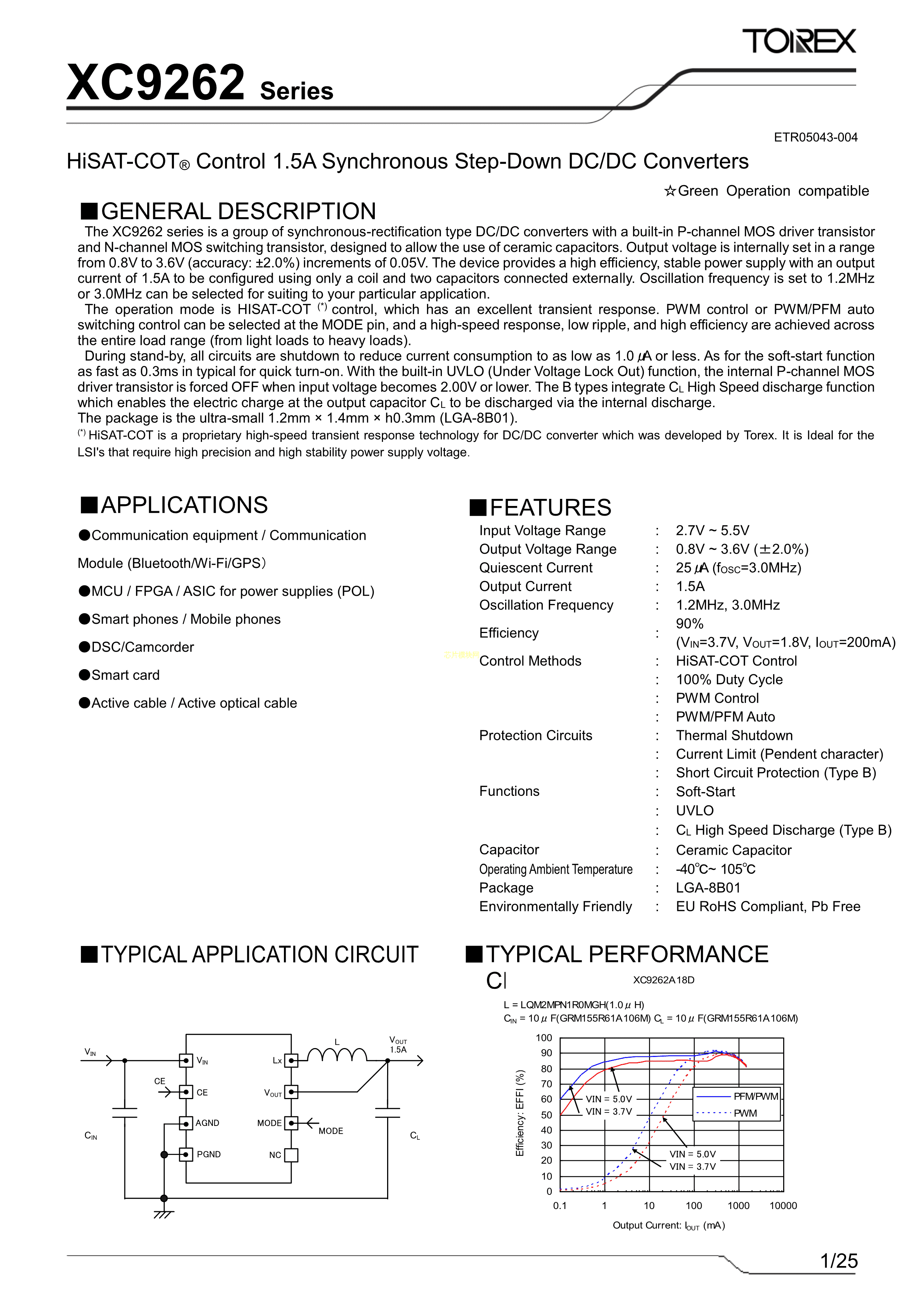 XC9262B20C1R-G数据手册LGA-8B01封装TOREX(特瑞仕)PDF规格书,中英文下载