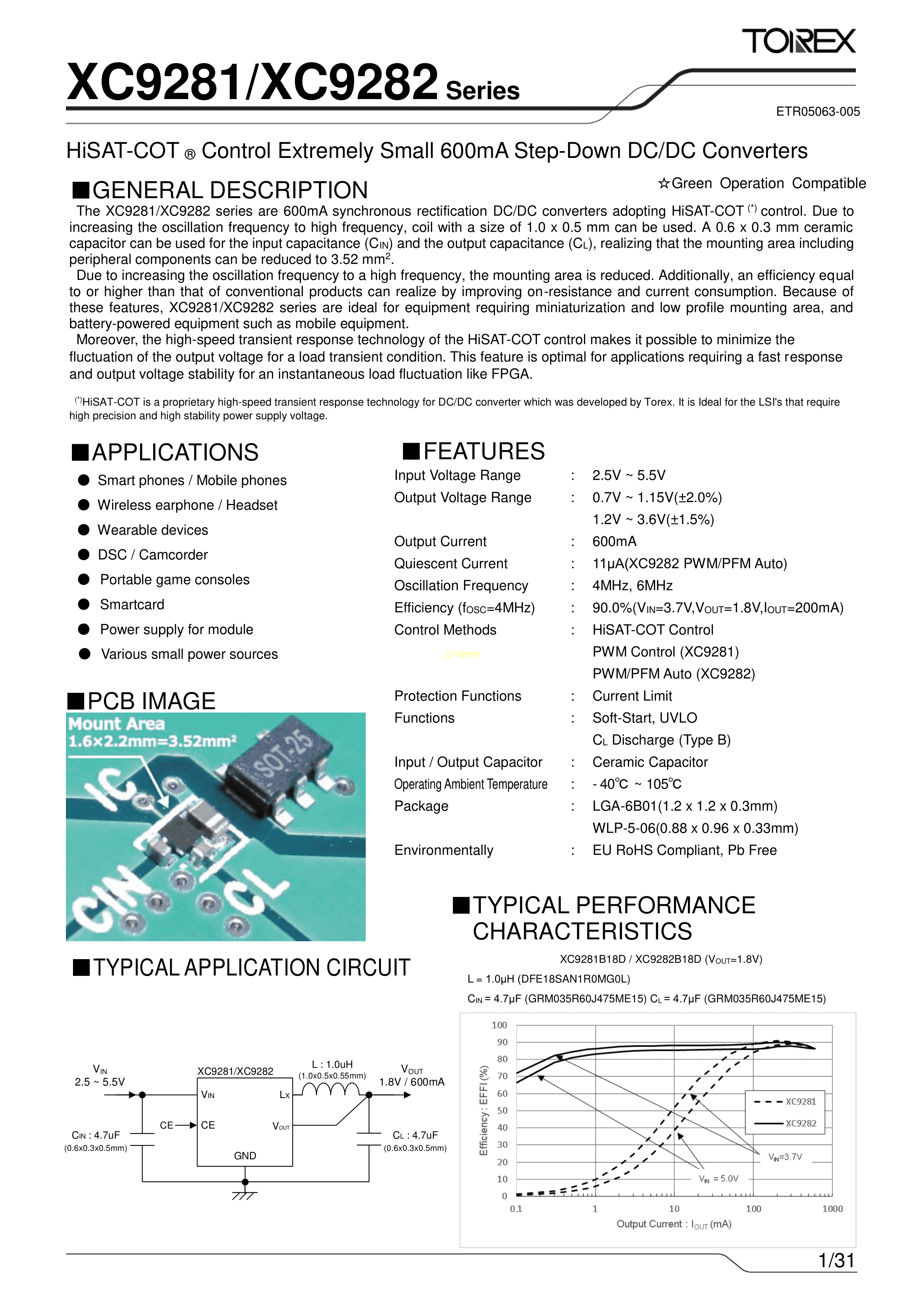 XC9281A2CE1R-G数据手册LGA-6B01(1.2x1.2)封装TOREX(特瑞仕)PDF规格书,中英文下载