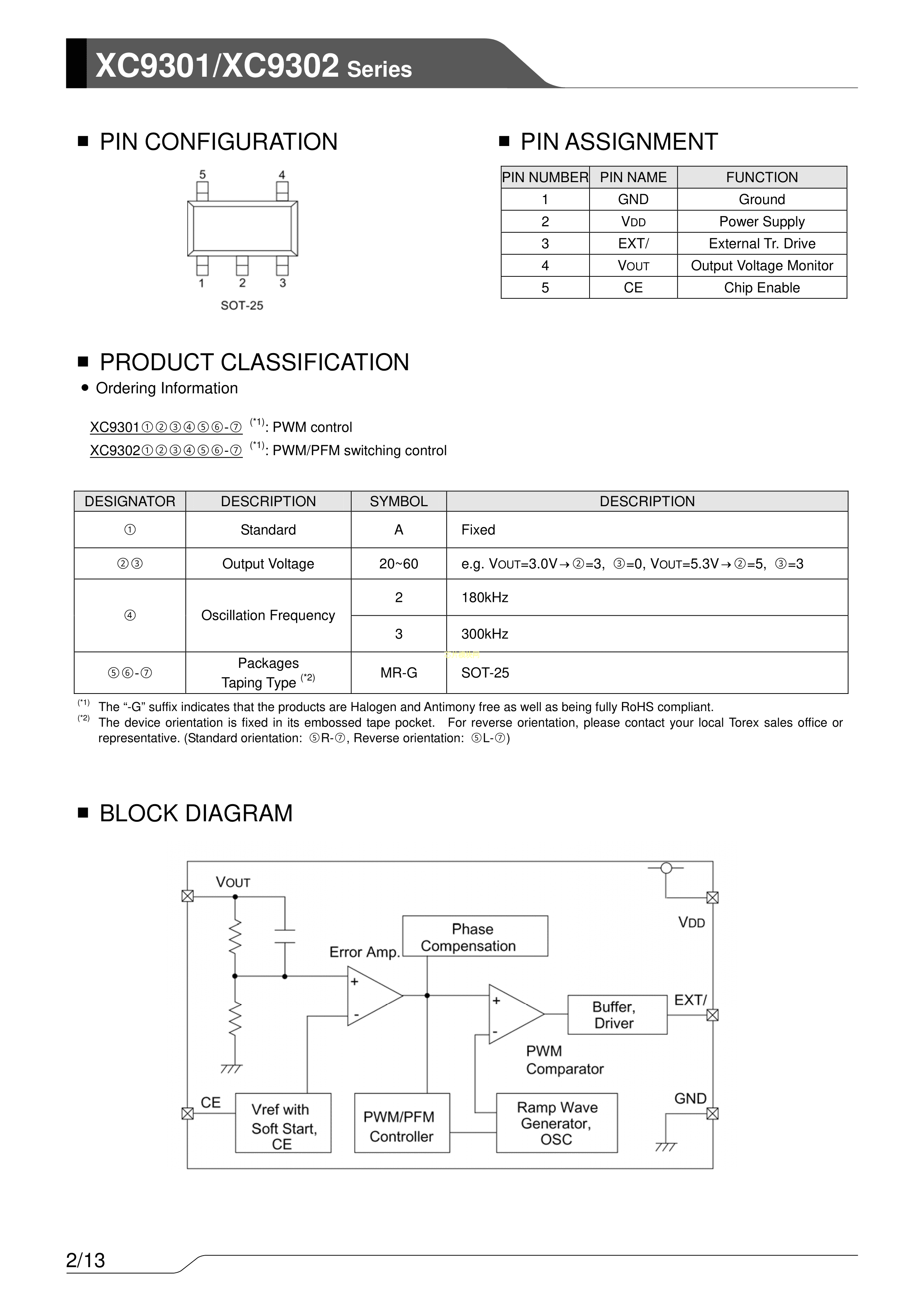 XC9302A362MR-G数据手册SOT-25封装TOREX(特瑞仕)PDF规格书,中英文下载