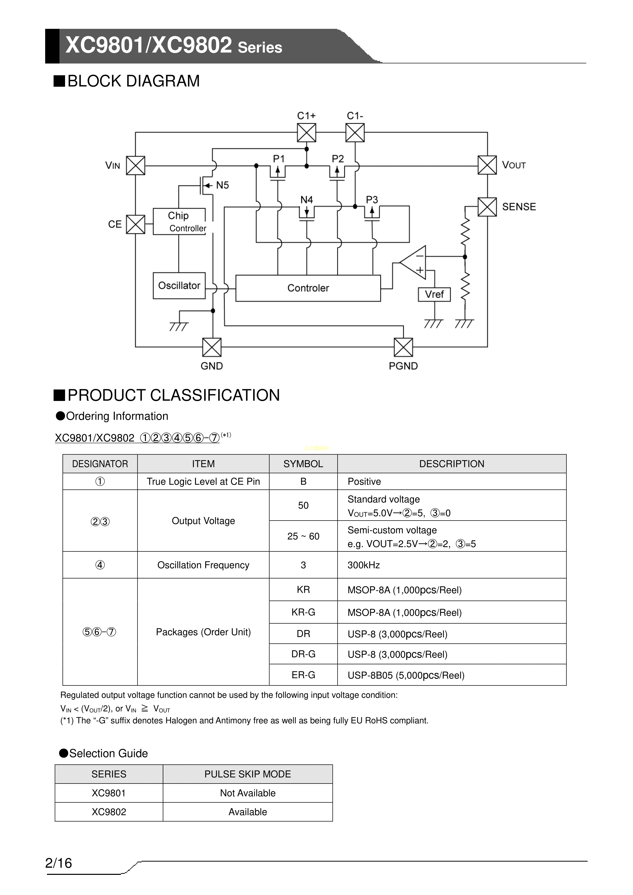 XC9802B253DR-G数据手册USP-8(2.7x2.5)封装TOREX(特瑞仕)PDF规格书
