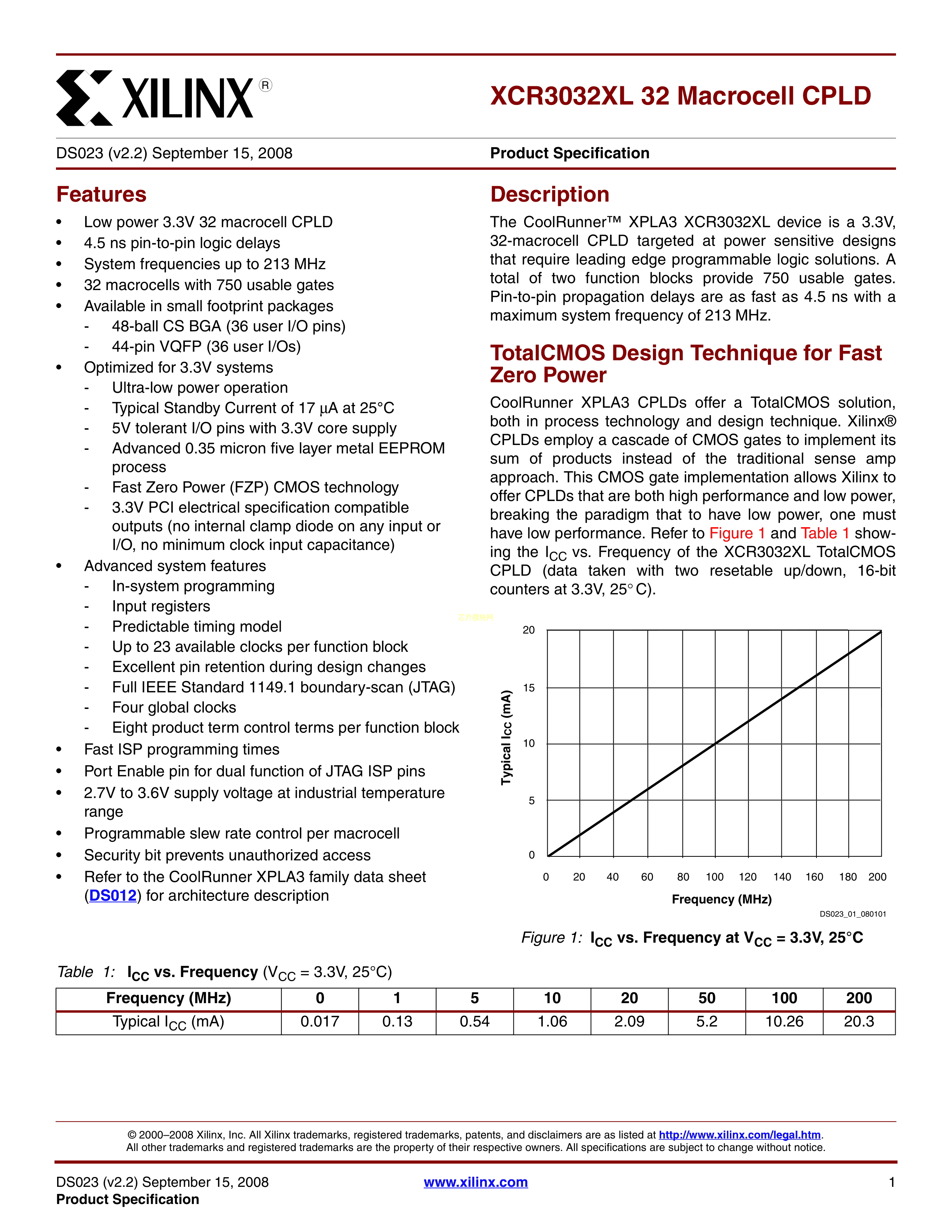 XCR3032XL-7CS48C数据手册CSBGA-48(7x7)封装XILINX(赛灵思)PDF规