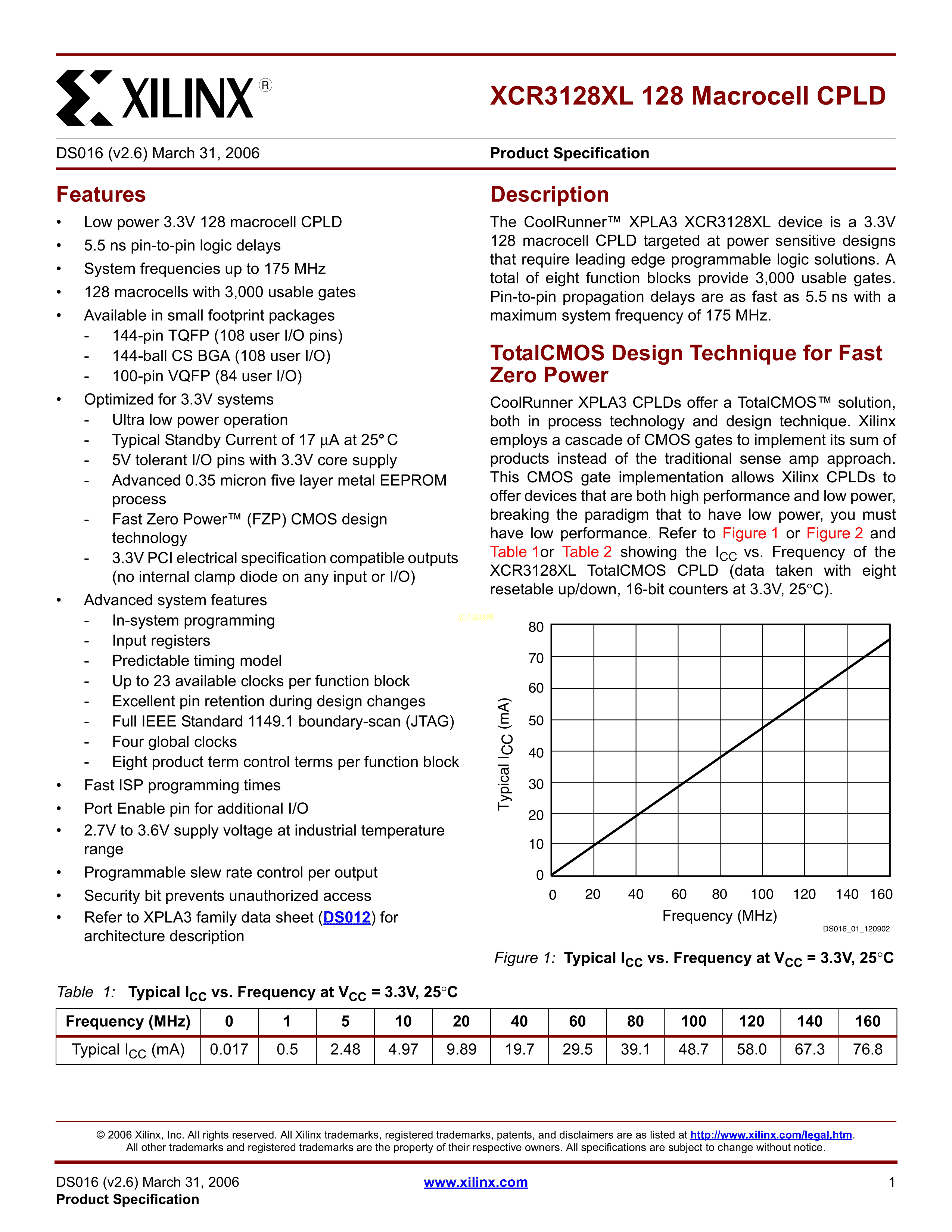 XCR3128XL-7TQG144I数据手册TQFP-144(20x20)封装XILINX(赛灵思)