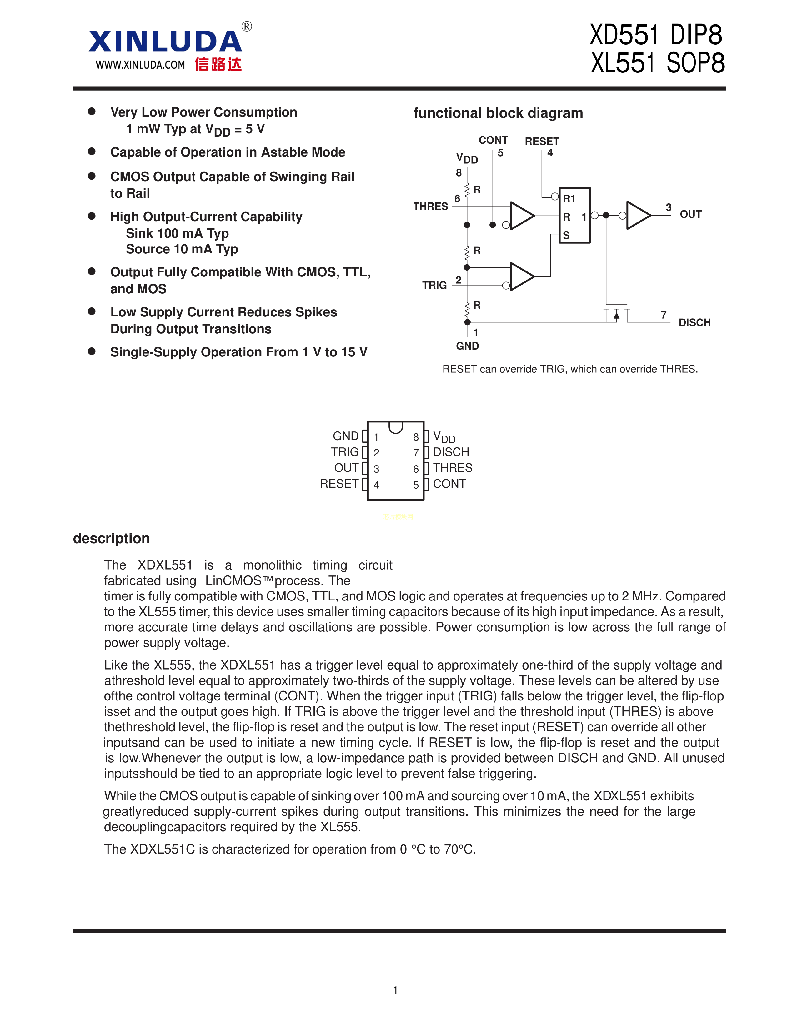 XD551数据手册DIP-8封装XINLUDA(信路达)PDF规格书,中英文下载