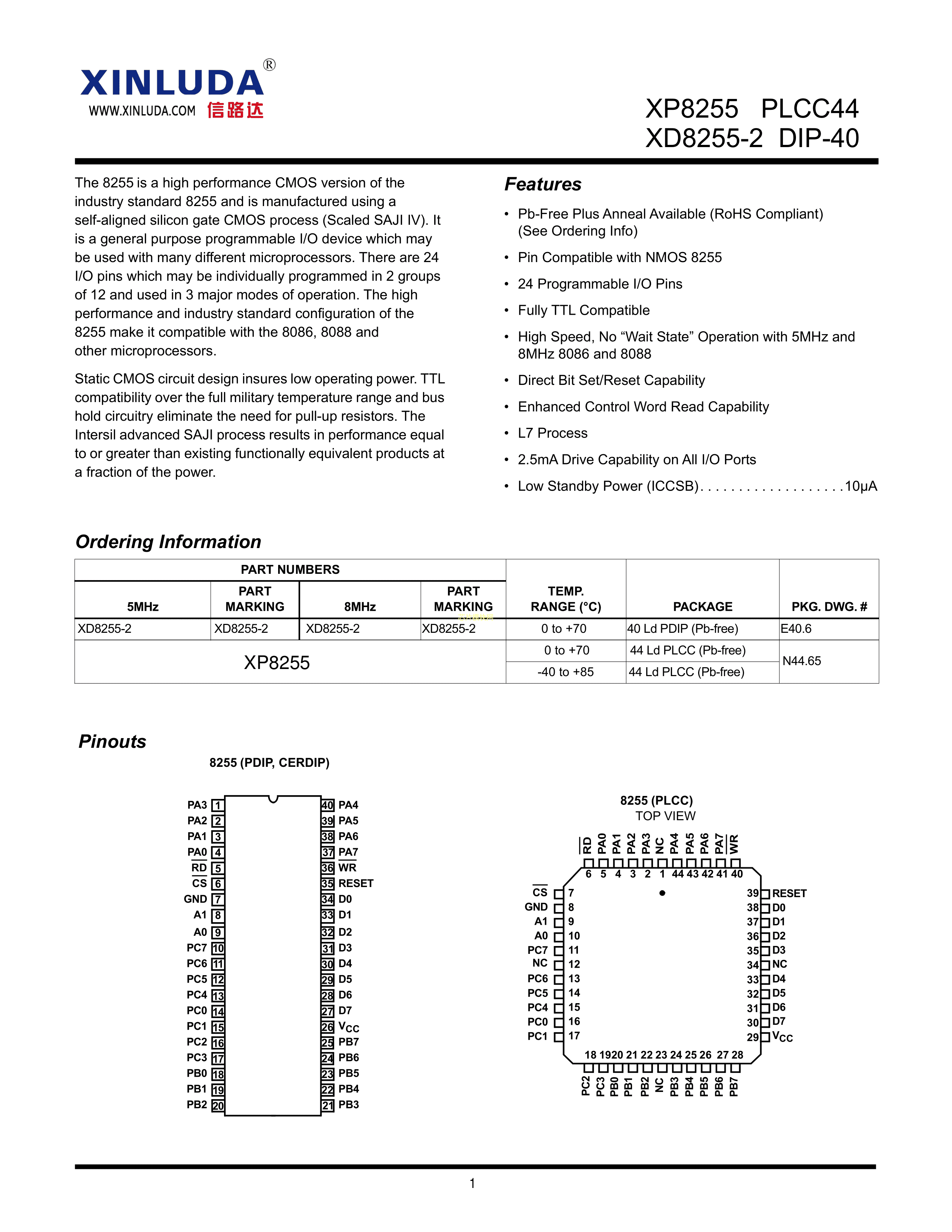 XD8255-2数据手册DIP-40封装XINLUDA(信路达)PDF规格书,中英文下载
