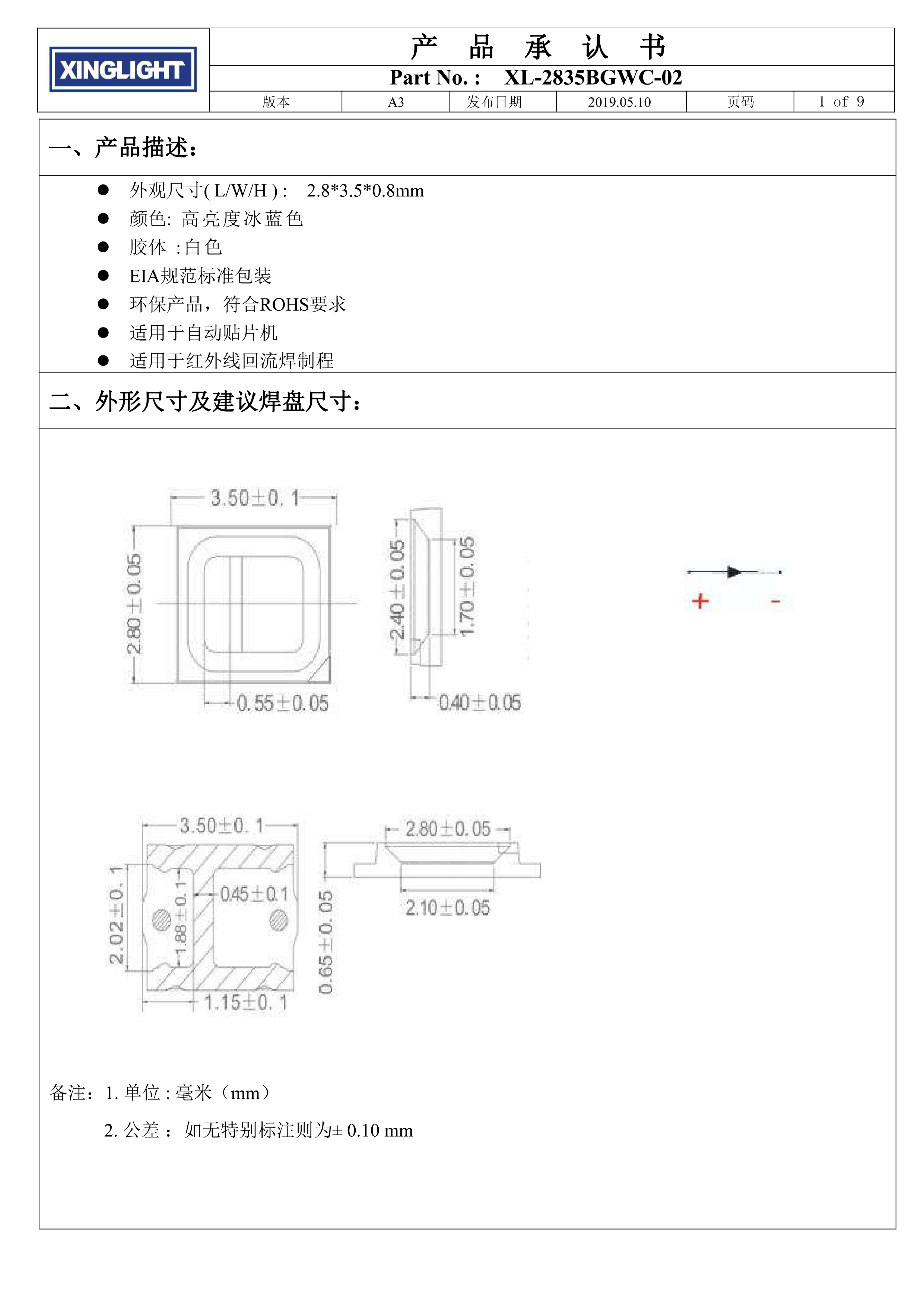 XL-2835BGWC-02数据手册SMD2.8x3.5x0.8mm封装XINGLIGHT(成兴光)
