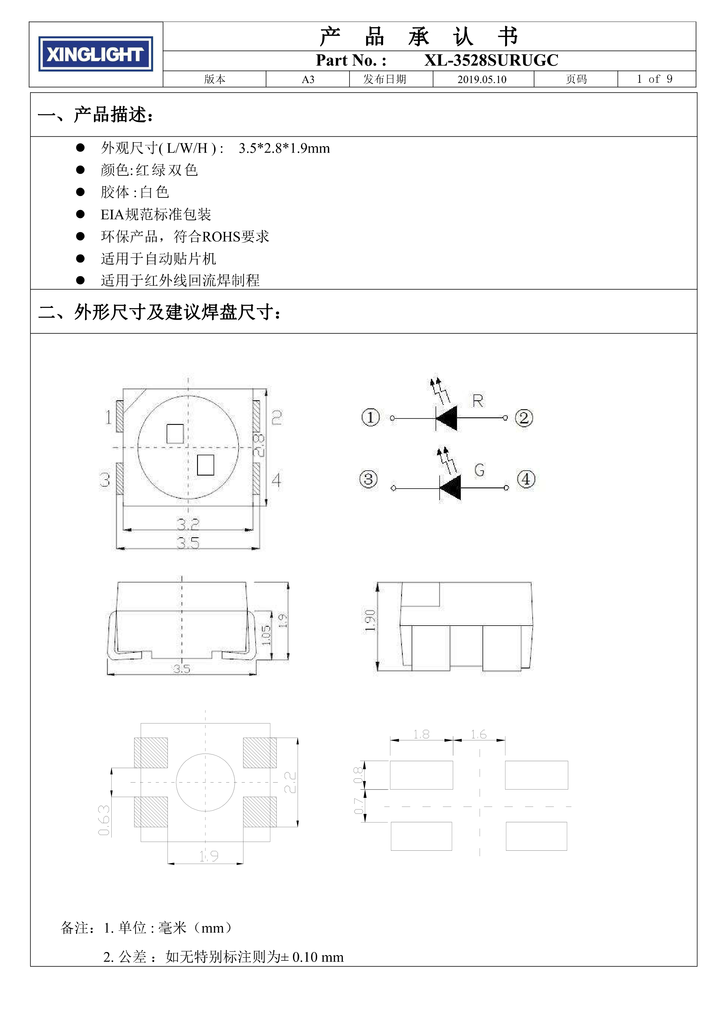 XL-3528SURUGC数据手册SMD3.5x2.8x1.9mm封装XINGLIGHT(成兴光)P