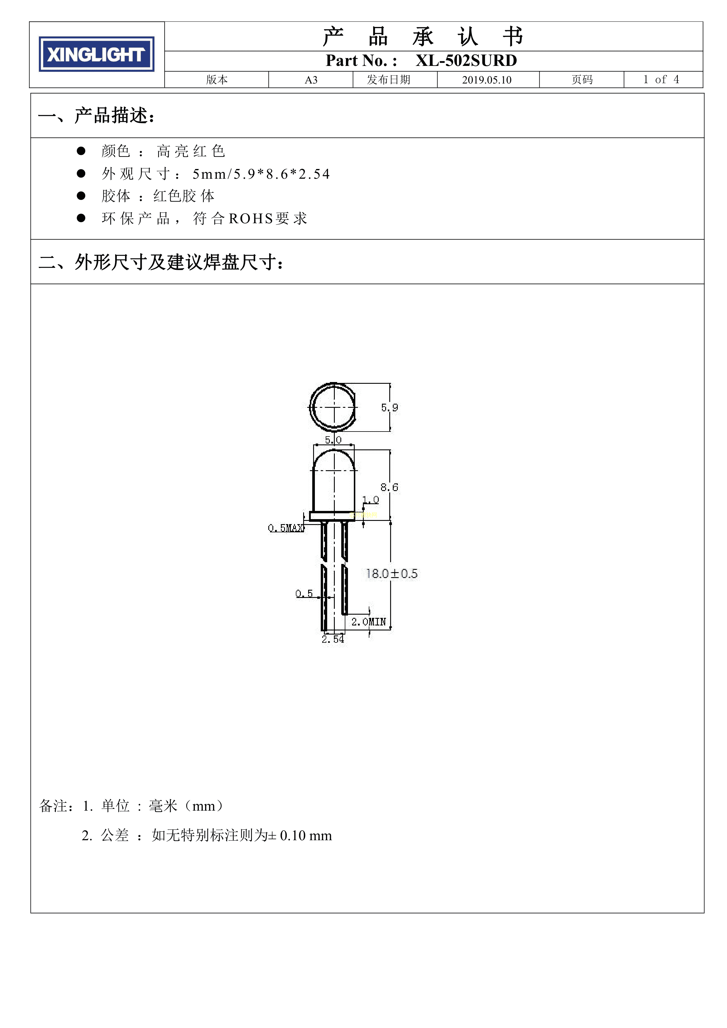 XL-502SURD数据手册插件φ5mm封装XINGLIGHT(成兴光)PDF规格书,中英文下载