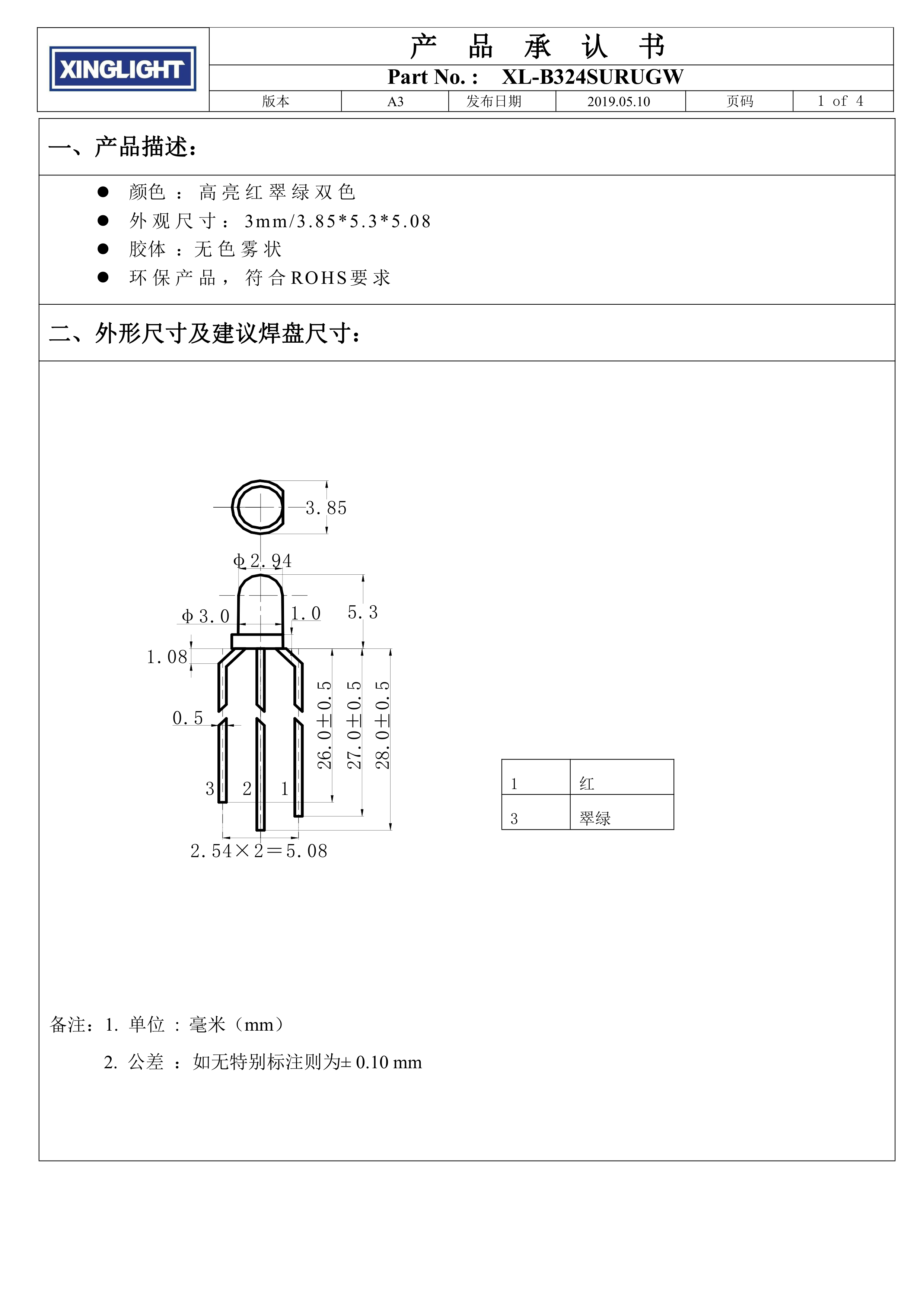 XL-B324SURUGW数据手册插件φ=3mm封装XINGLIGHT(成兴光)PDF规格书,中英文