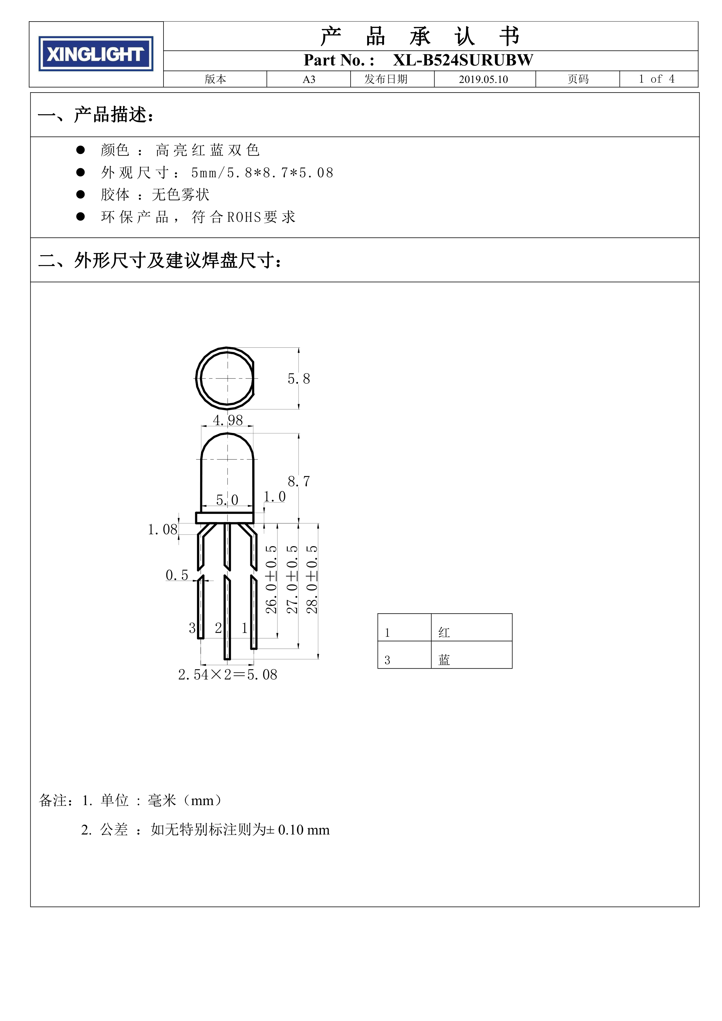 XL-B524SURUBW数据手册插件φ=5mm封装XINGLIGHT(成兴光)PDF规格书,中英文