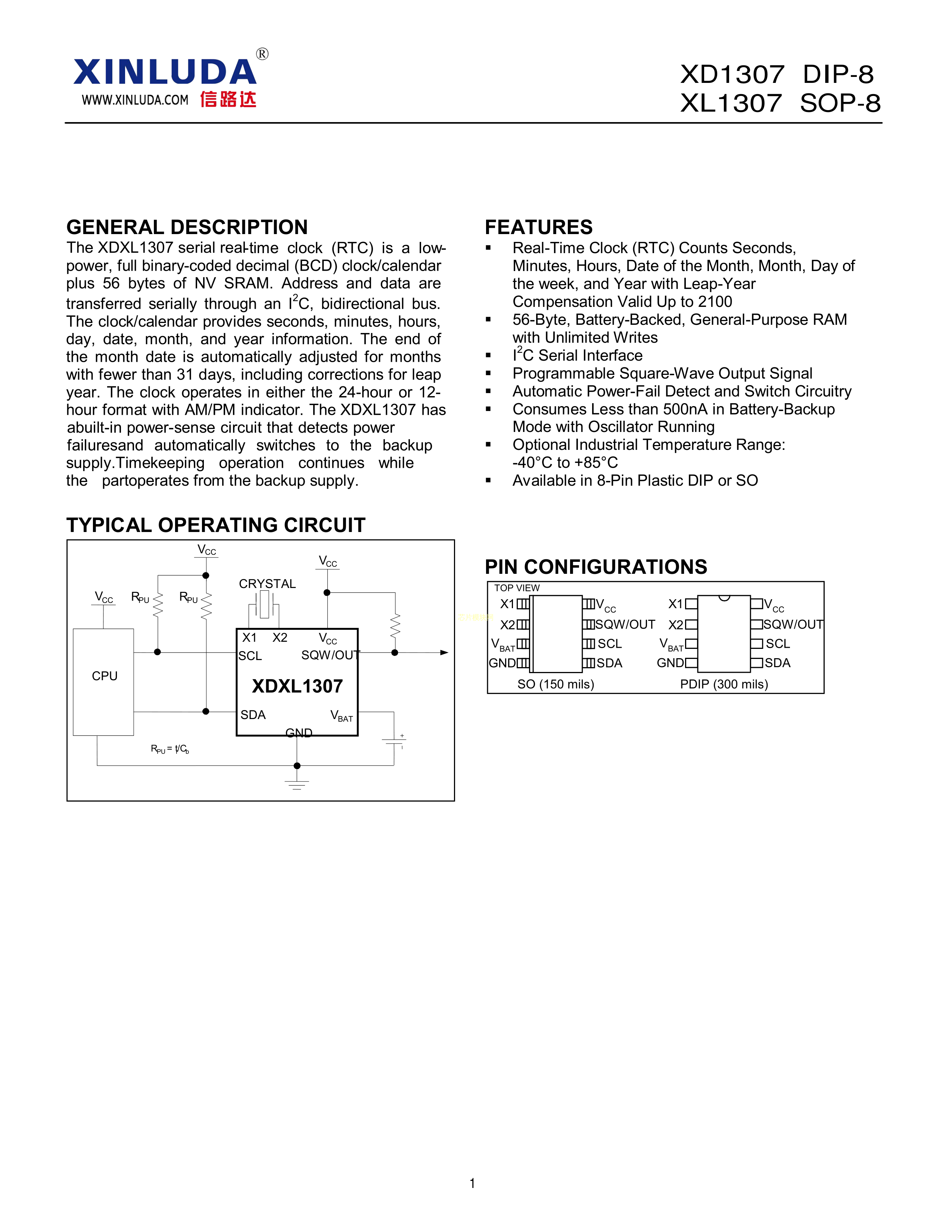 XL1307数据手册SOP-8封装XINLUDA(信路达)PDF规格书,中英文下载