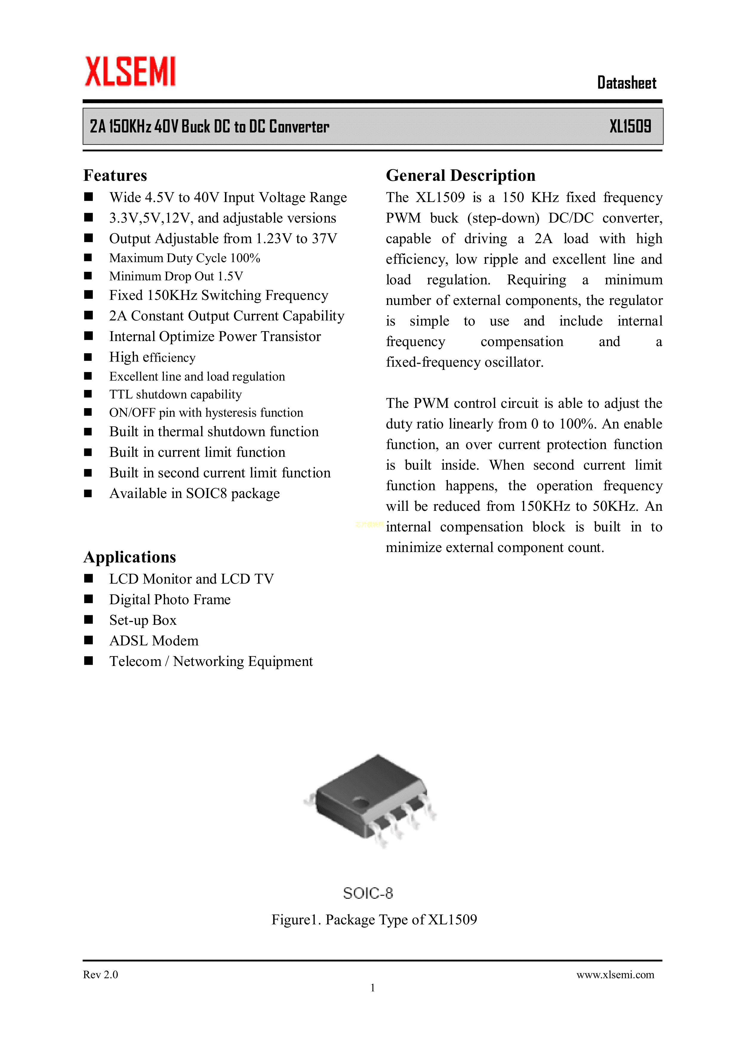 XL1509-5.0E1数据手册SOP-8_150mil封装XLSEMI(芯龙)PDF规格书,中英文