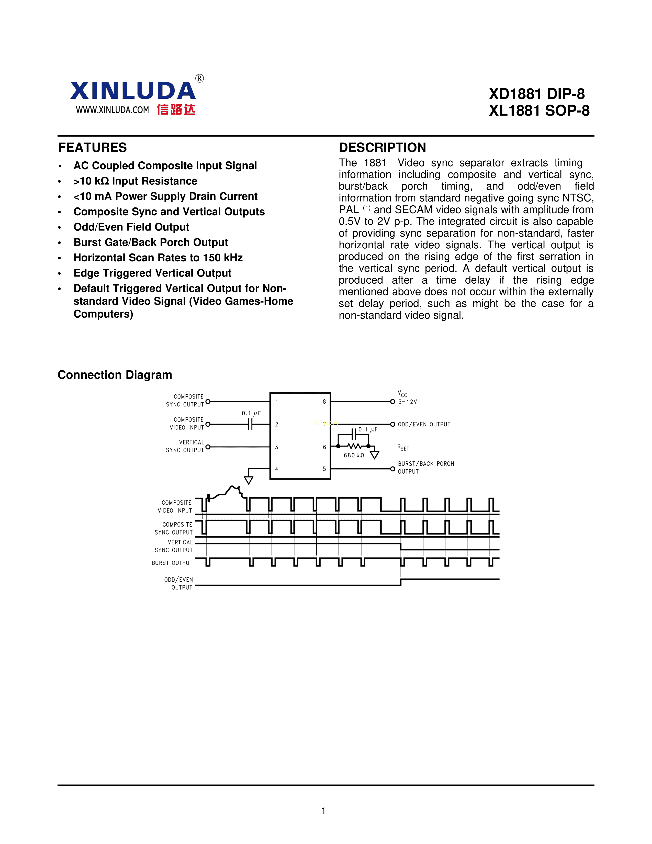 XL1881数据手册SOP-8封装XINLUDA(信路达)PDF规格书,中英文下载