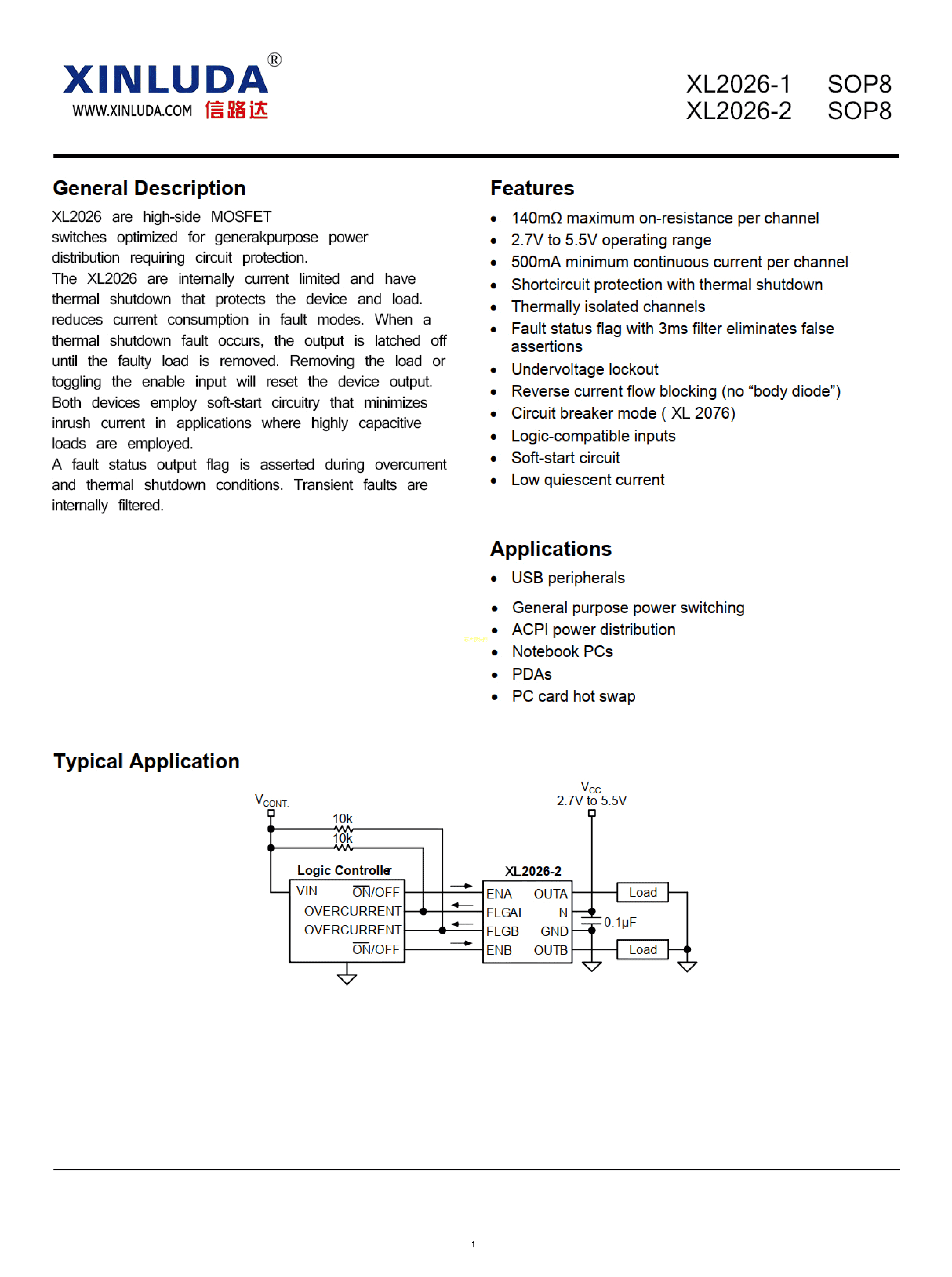 XL2026-1数据手册SOP-8封装XINLUDA(信路达)PDF规格书,中英文下载