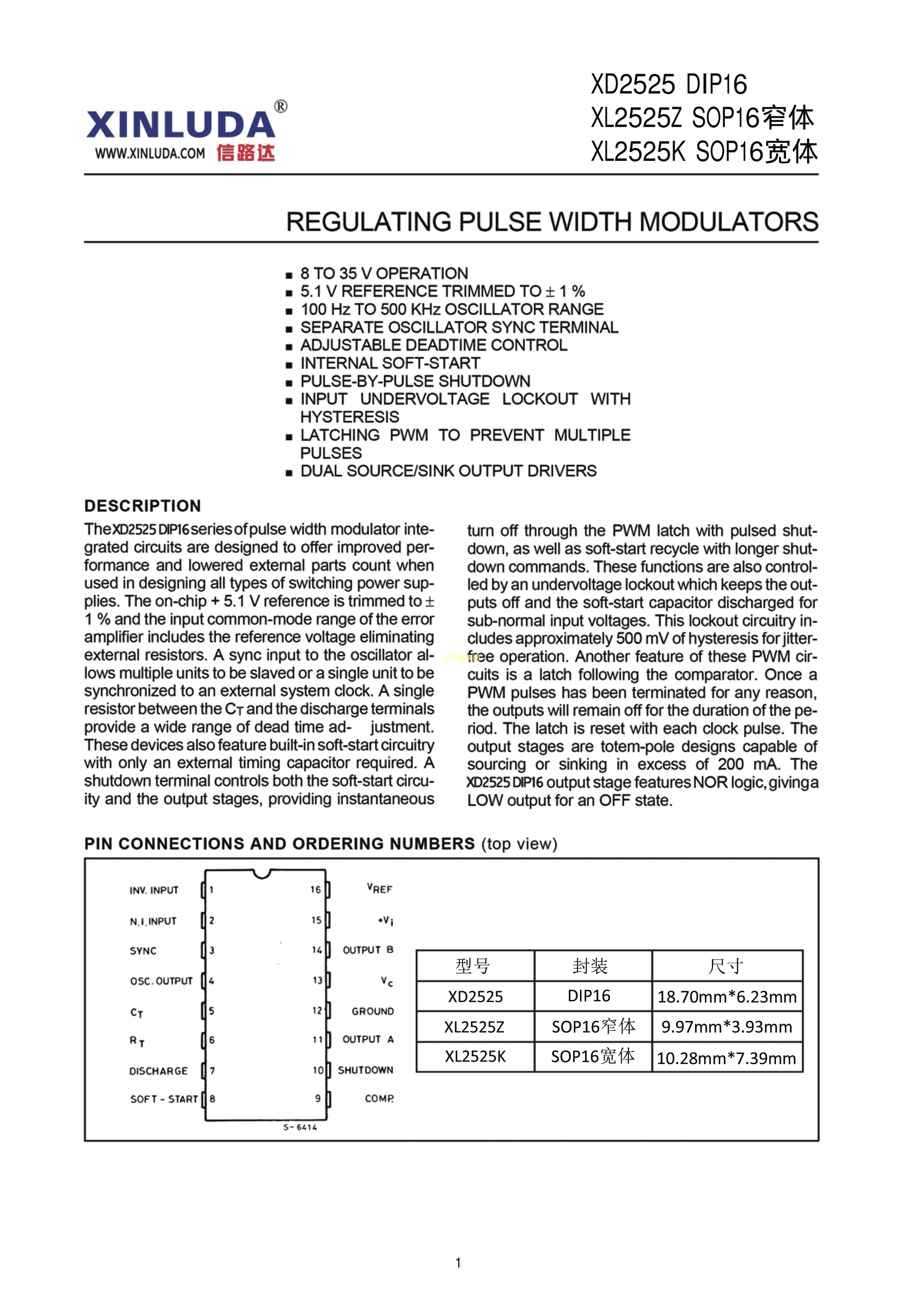 XL2525K数据手册SOP-16封装XINLUDA(信路达)PDF规格书,中英文下载