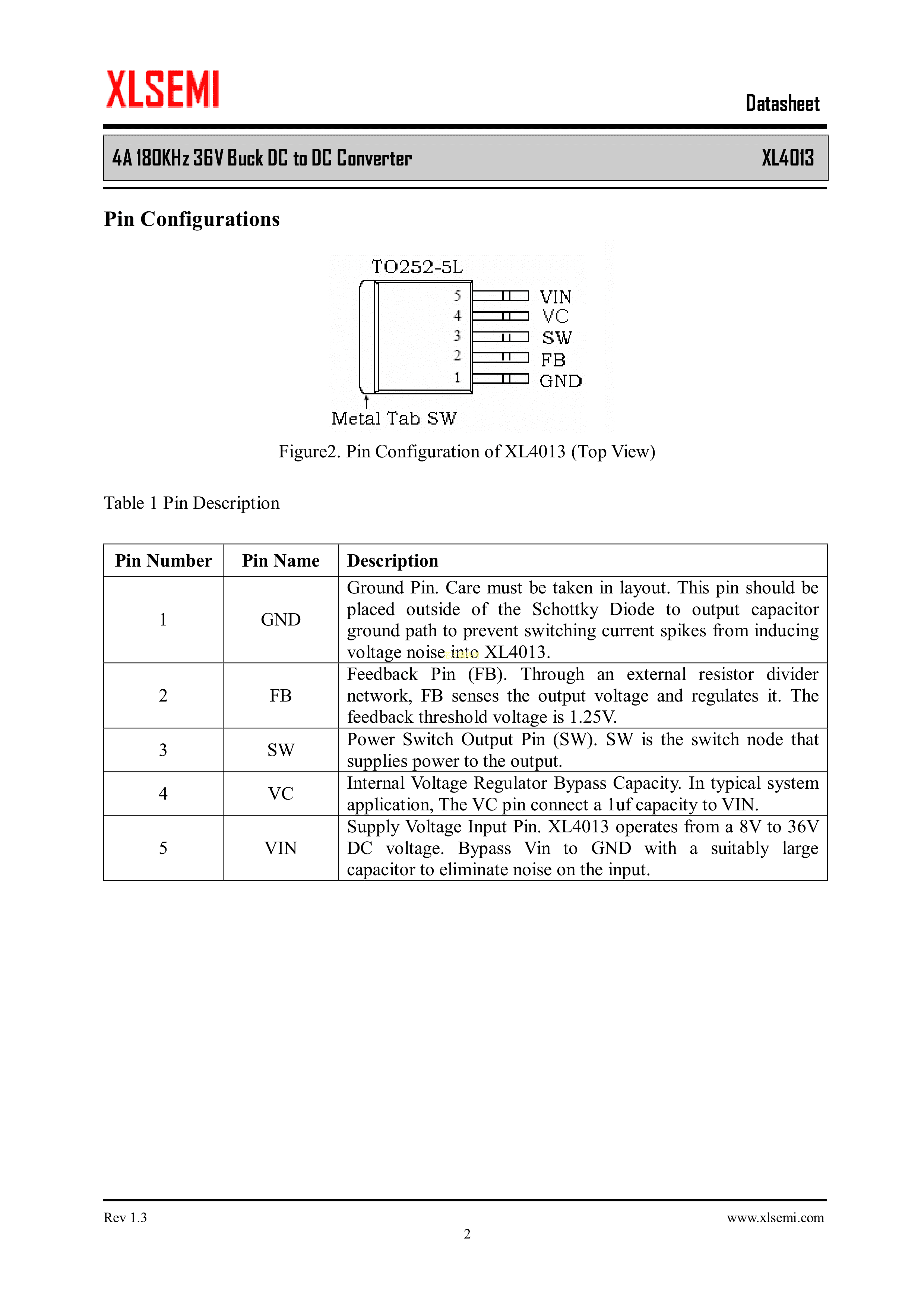 XL4013E1数据手册TO-252-5封装XLSEMI(芯龙)PDF规格书,中英文下载