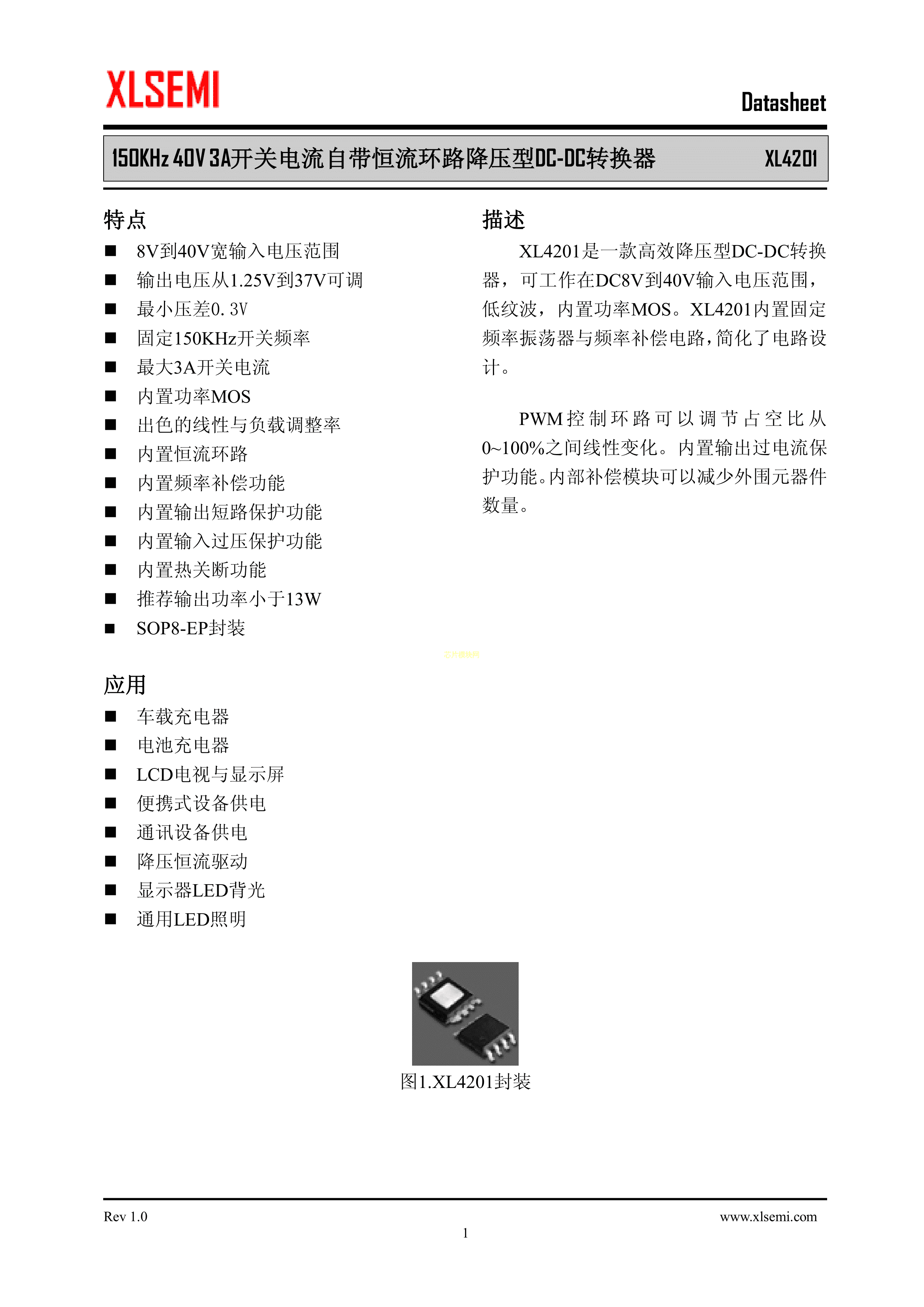XL4201E1数据手册SOP-8EP封装XLSEMI(芯龙)PDF规格书,中英文下载