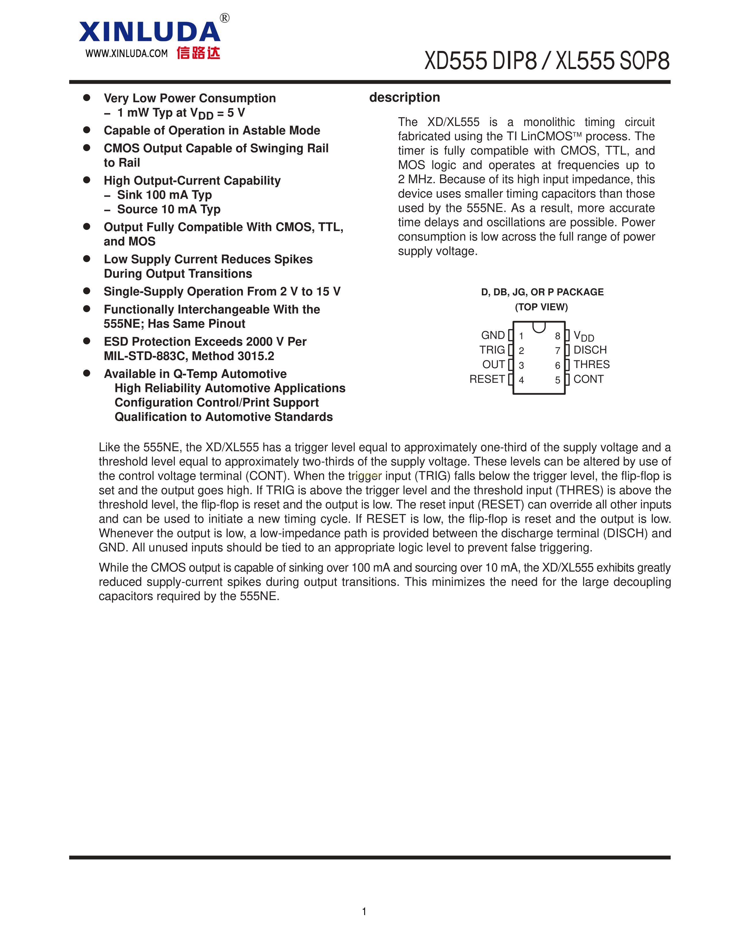 XL555数据手册SOP-8封装XINLUDA(信路达)PDF规格书,中英文下载