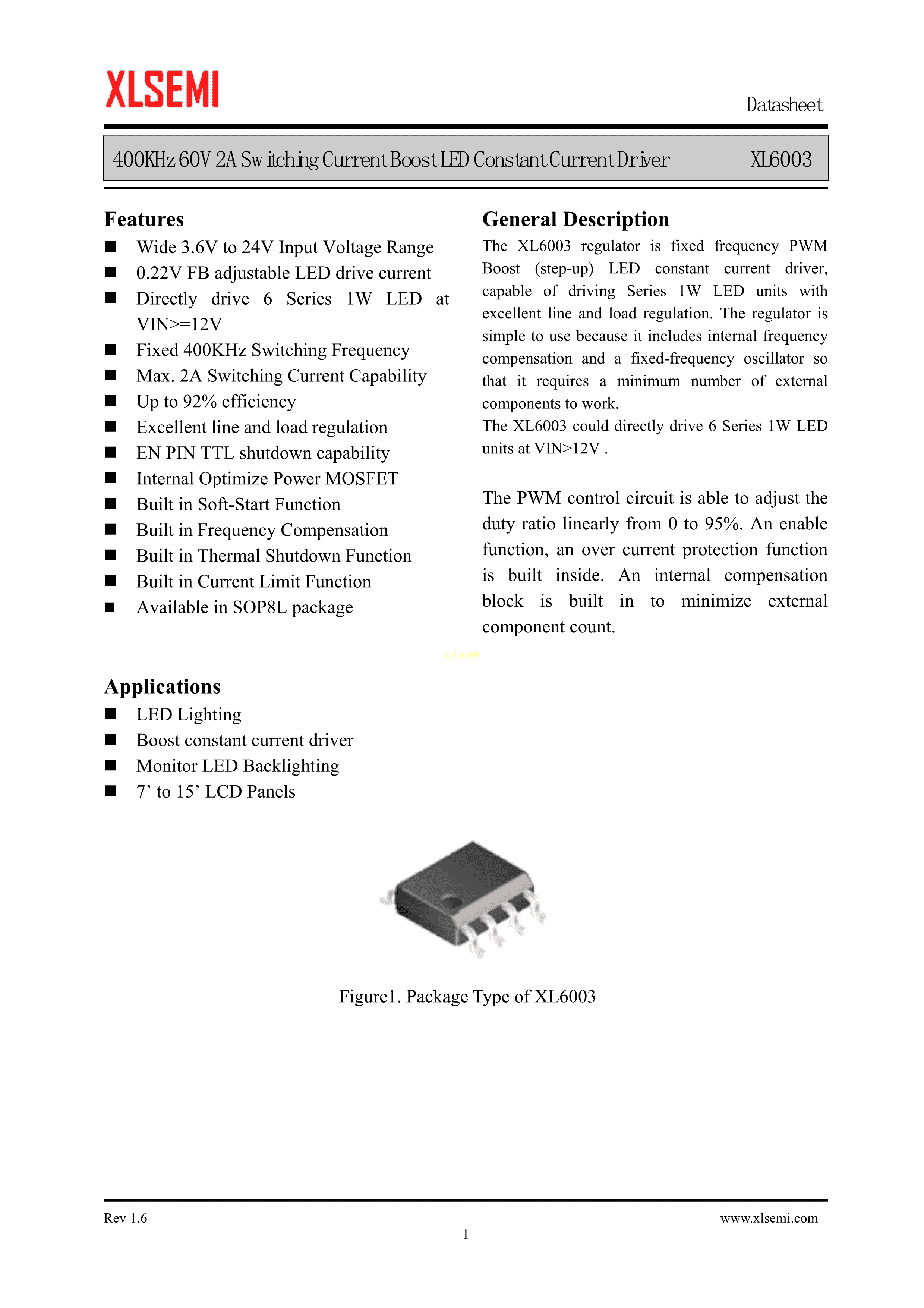 XL6003E1数据手册SOIC-8_150mil封装XLSEMI(芯龙)PDF规格书,中英文下载
