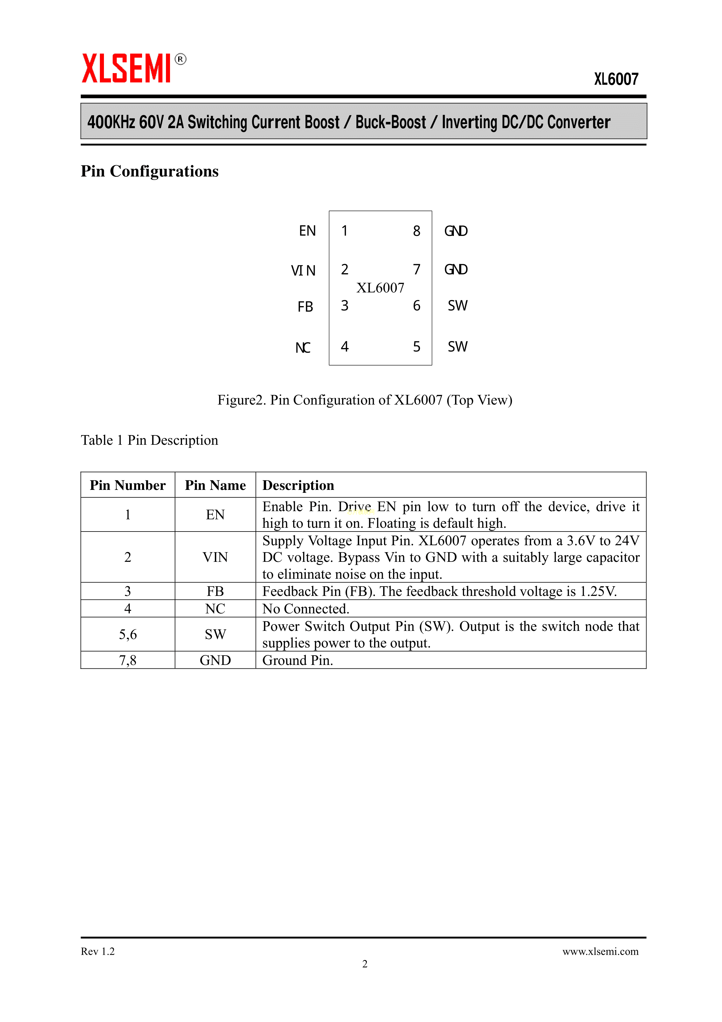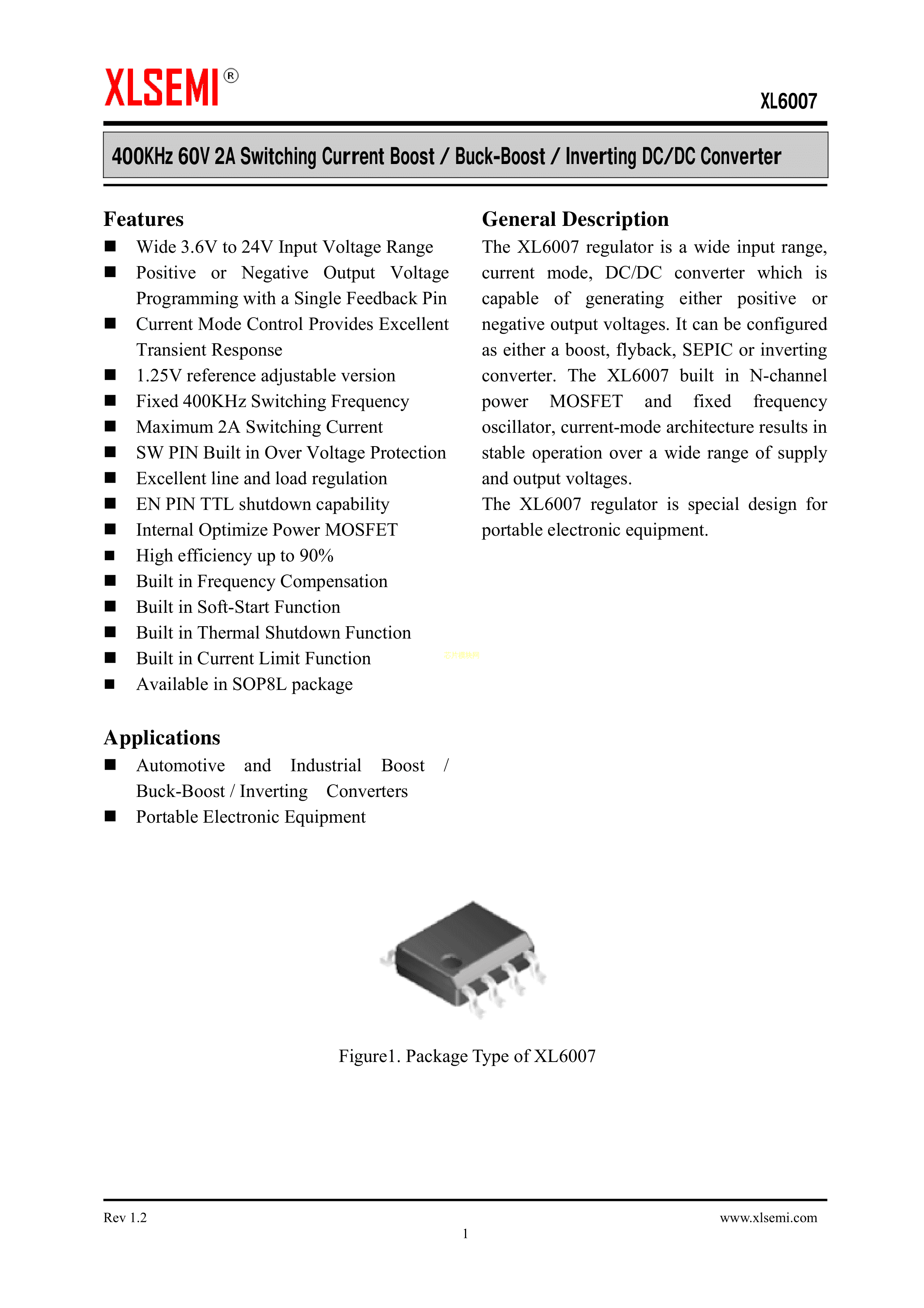 XL6007E1数据手册SOIC-8_150mil封装XLSEMI(芯龙)PDF规格书,中英文下载