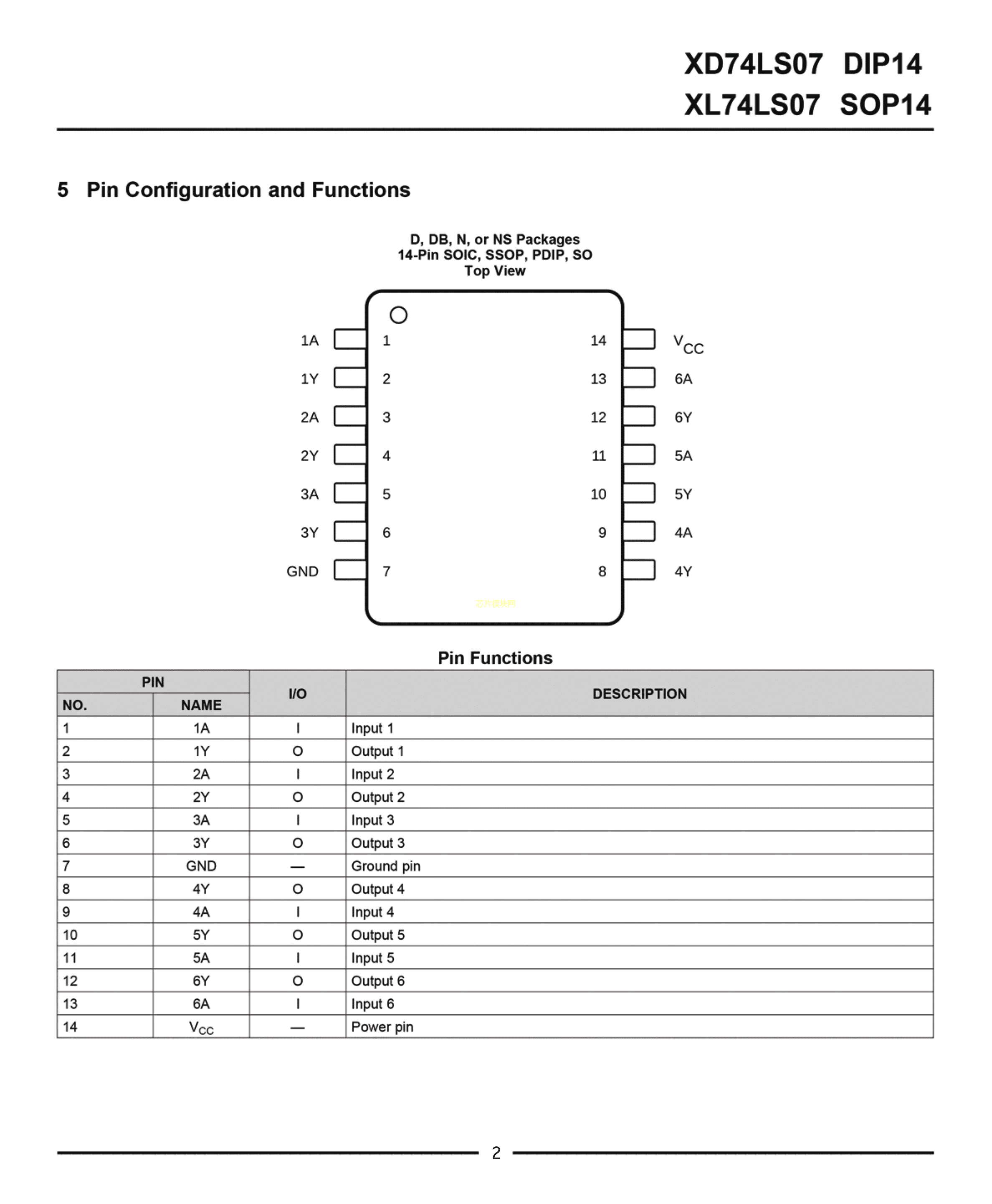 XL74LS07数据手册SOIC-14封装XINLUDA(信路达)PDF规格书,中英文下载