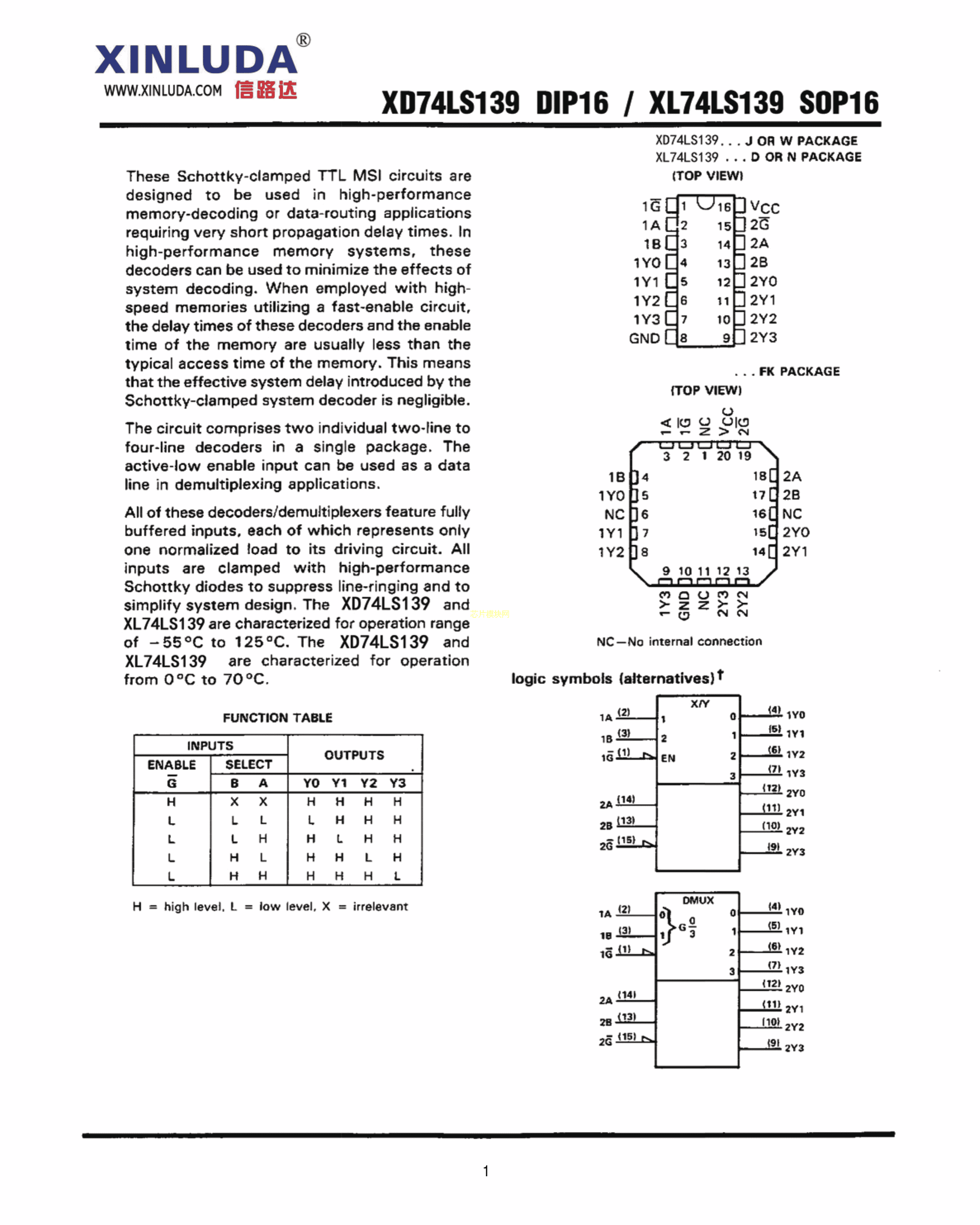 XL74LS139数据手册SOP-16封装XINLUDA(信路达)PDF规格书,中英文下载