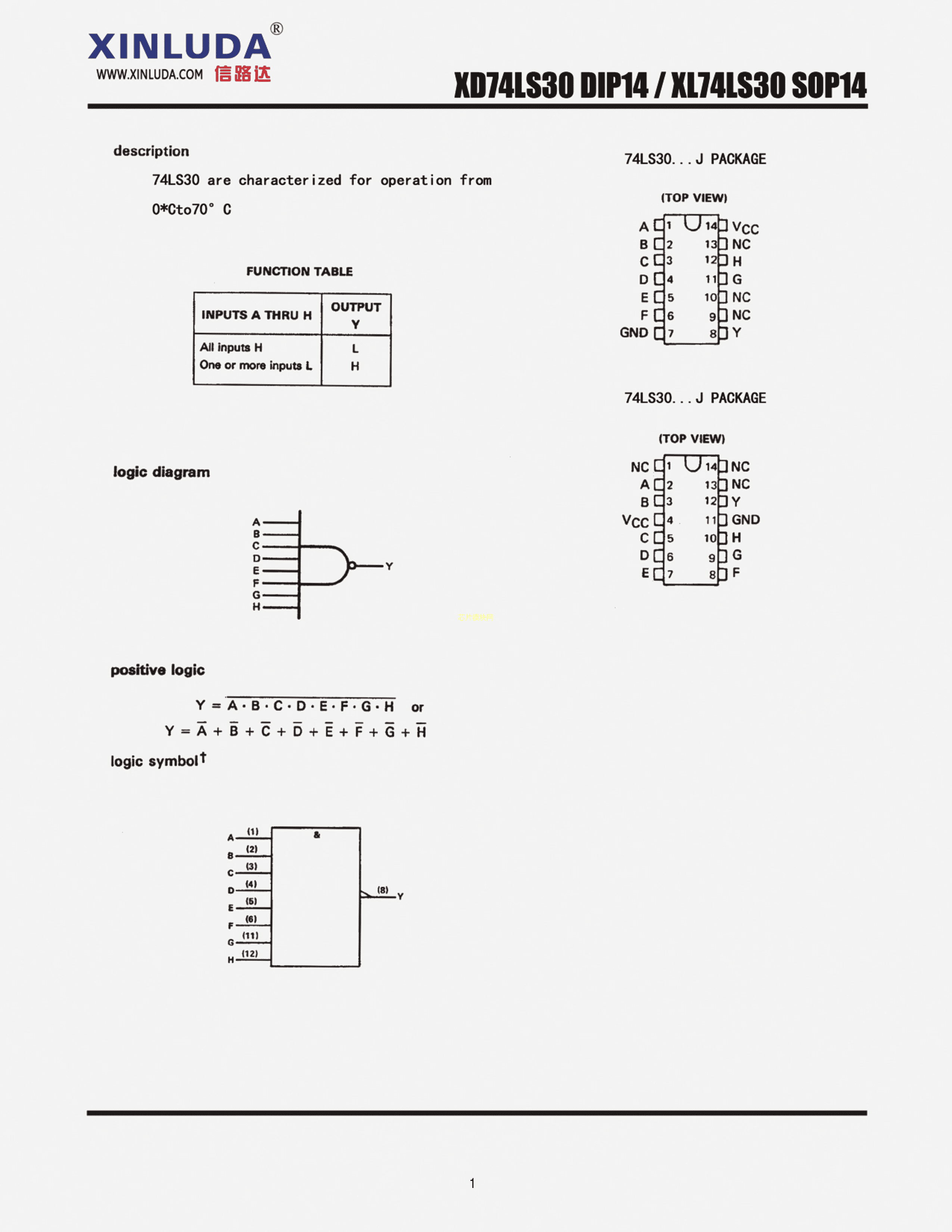 XL74LS30数据手册SOP-14封装XINLUDA(信路达)PDF规格书,中英文下载