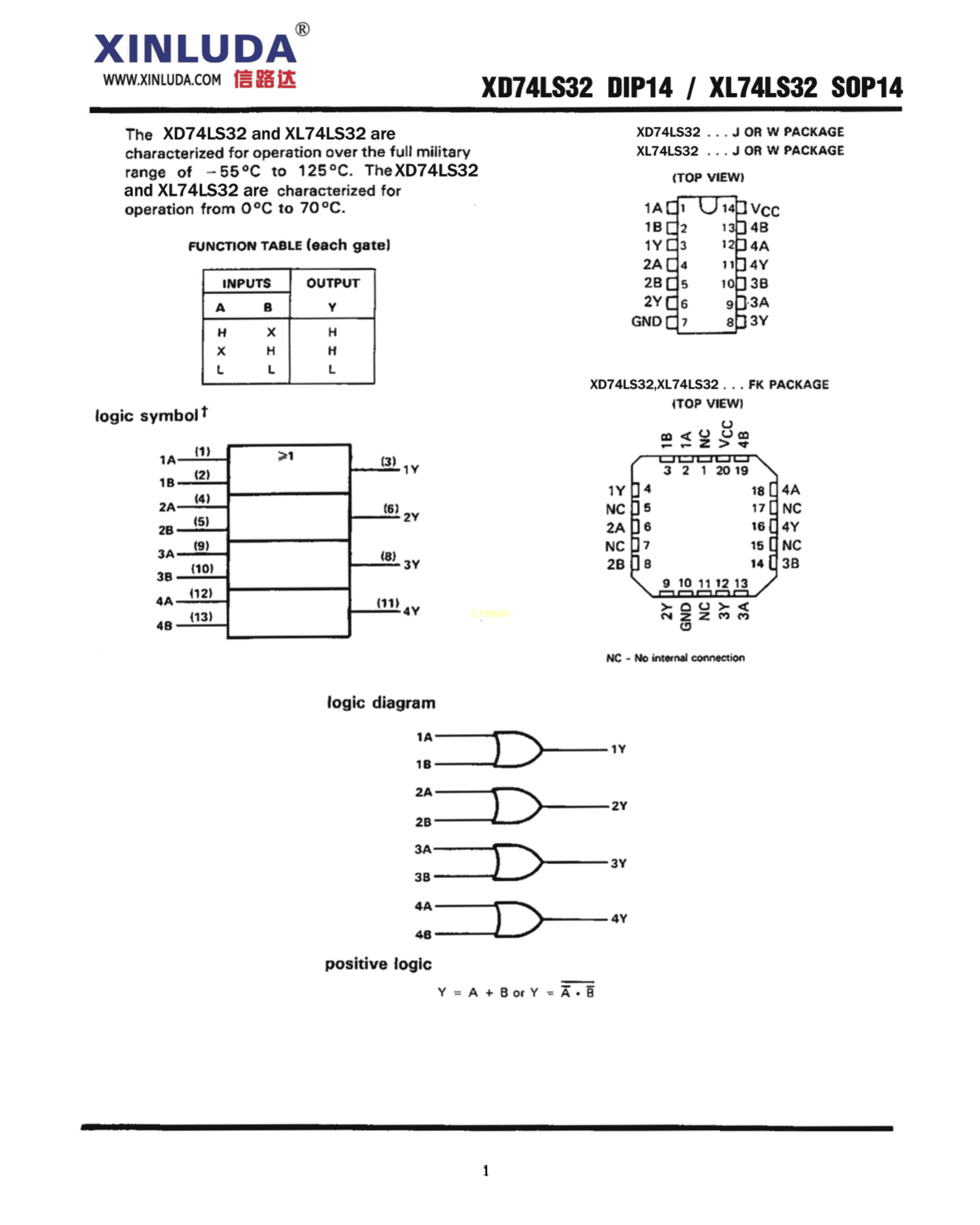 XL74LS32数据手册SOP-14封装XINLUDA(信路达)PDF规格书,中英文下载