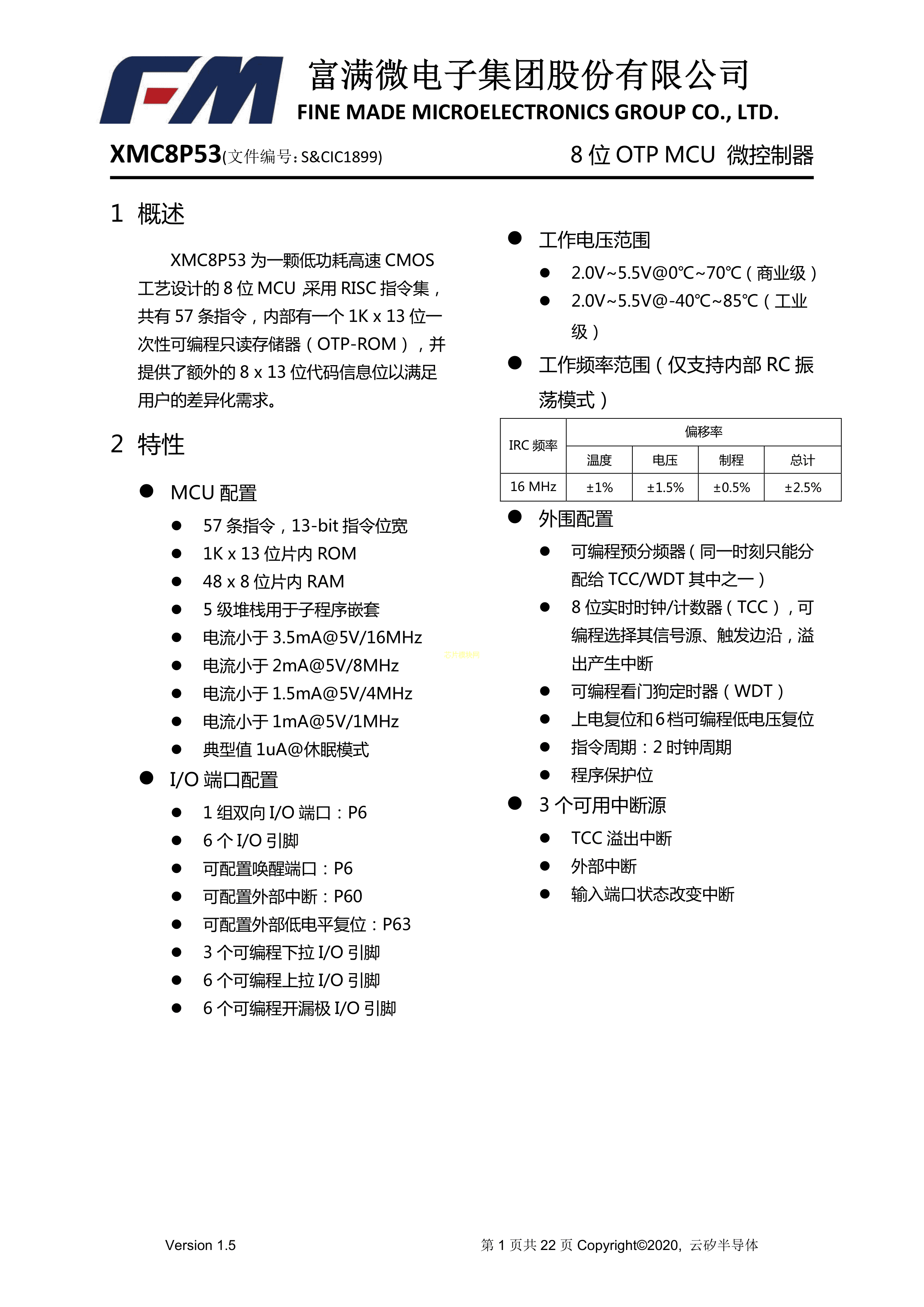 XMC8P53S6APDF规格书,中英文下载